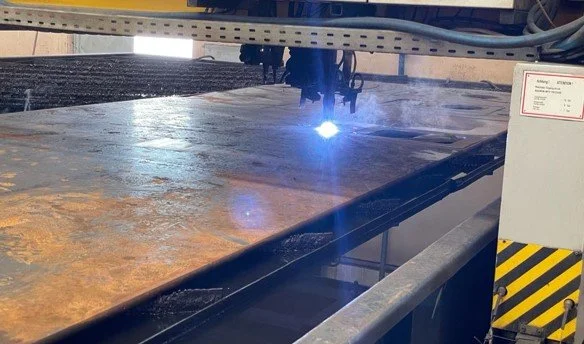 CNC plasma cutter in operation. Steel cutting for P604 to commence in August 2022.