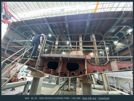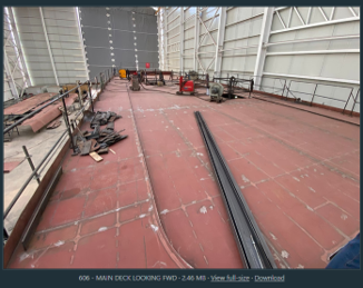 • Overall the steelwork is very good; plating is not getting ground too roughly. steel has been rolled by outside contractors, overall smooth rolls. There is one area where the steel has a large bubble which has been noted by the shipyard and OT - See # 05 below