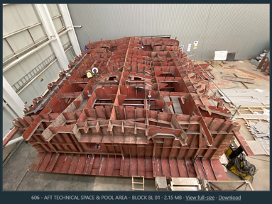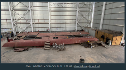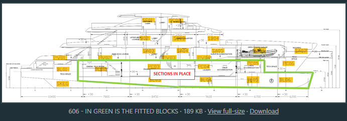 • There are many blocks under construction, you can see in the green box the blocks that are in place and the sections are welded together