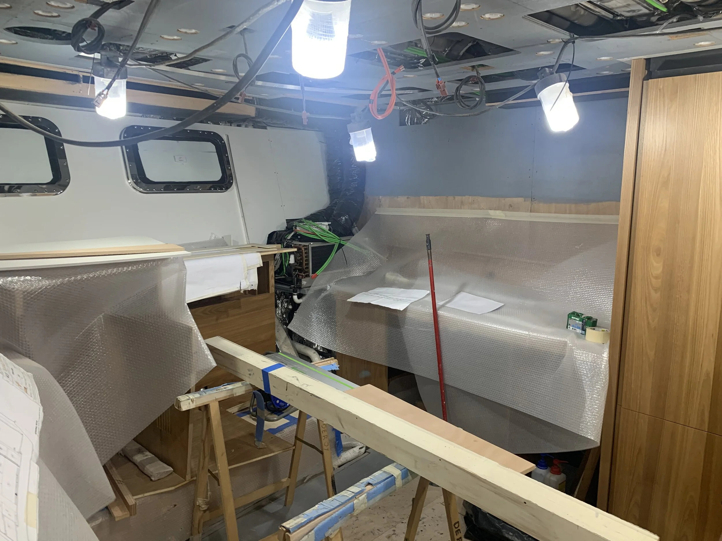 Owners Cabin - Cabinetry Appox 10% complete. Windows not yet installed