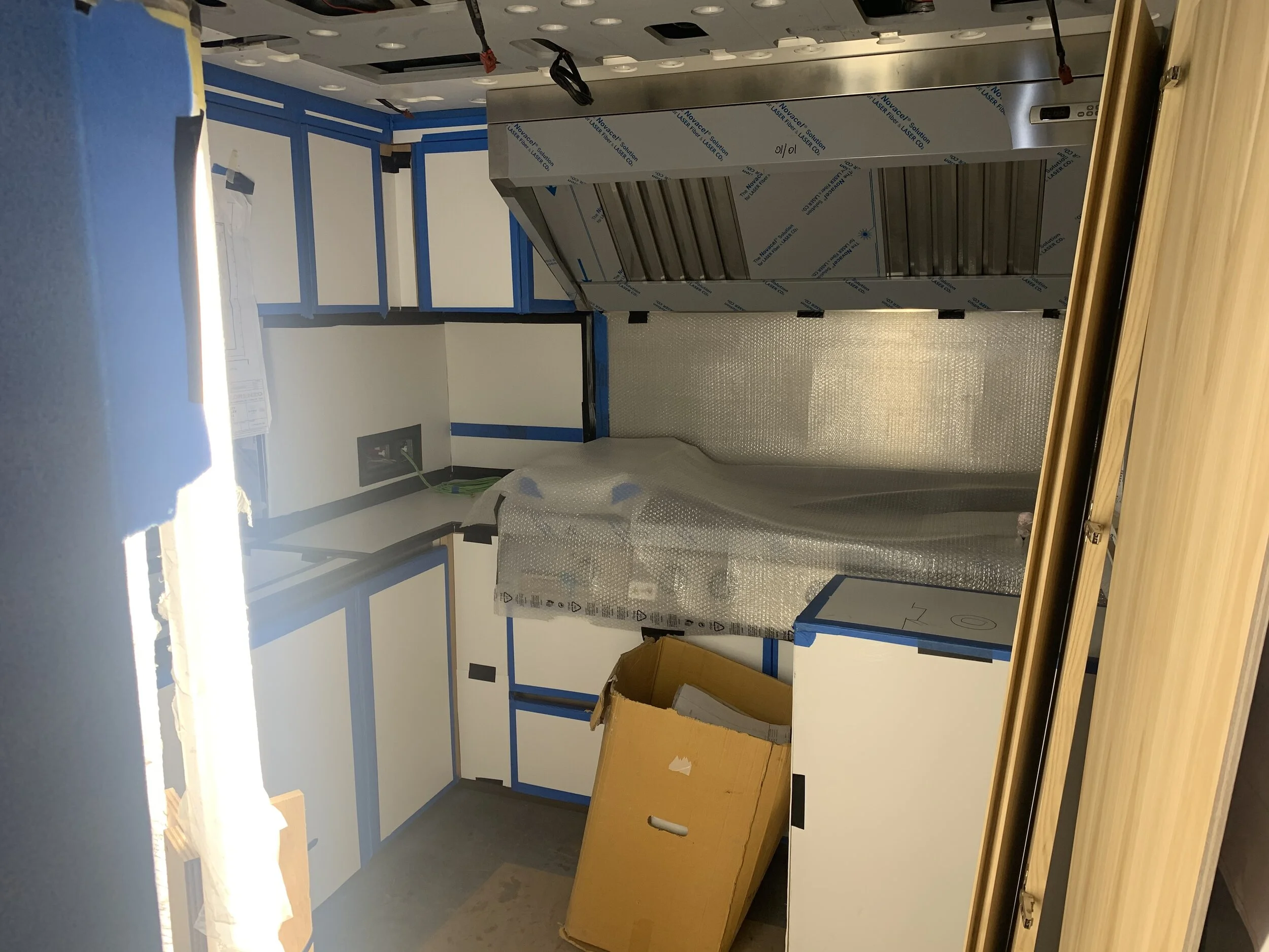 Galley - Appliances installed, counter tops installed, floor to complete