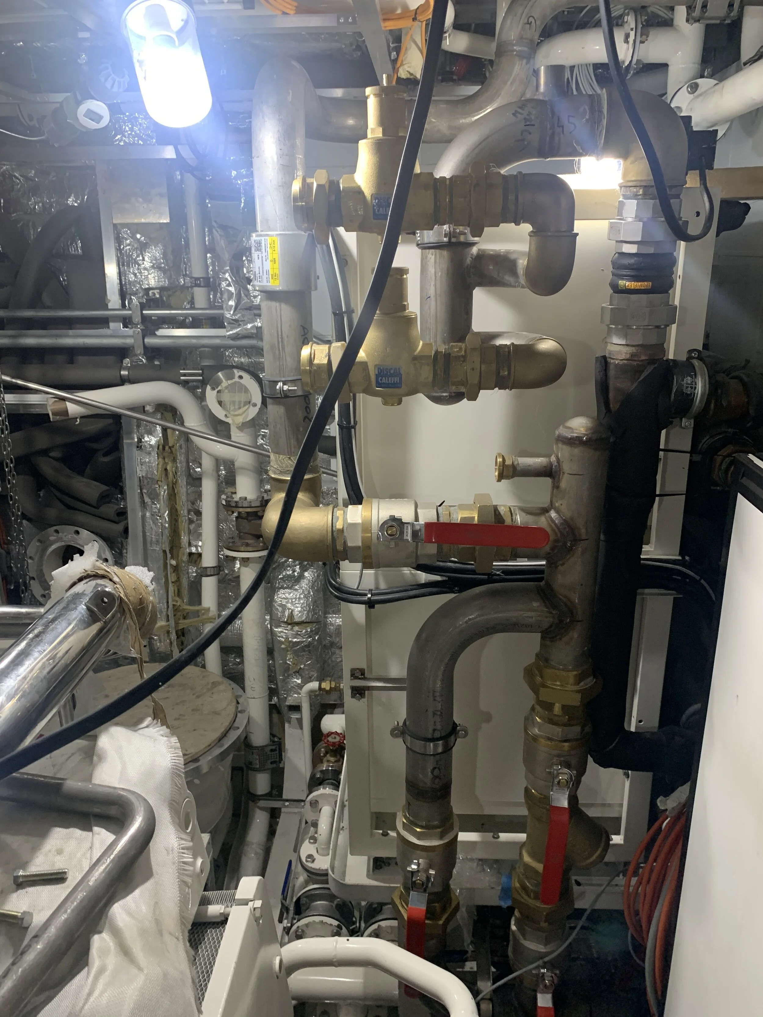 Hot and Cold Fresh Water System: piping appears to be 95/100% complete. Pumping and heating components are in place, with final connection to the main system in progress.