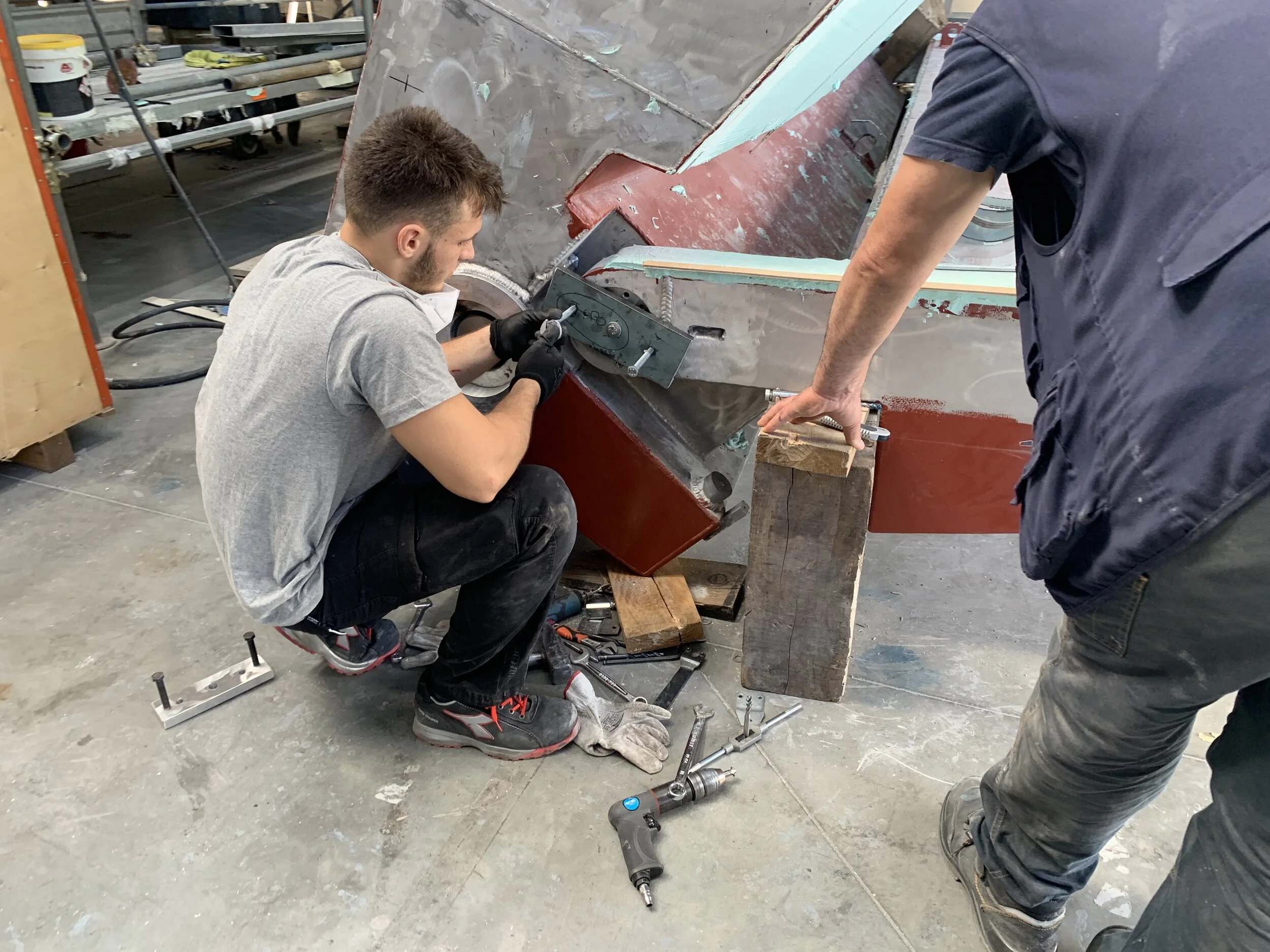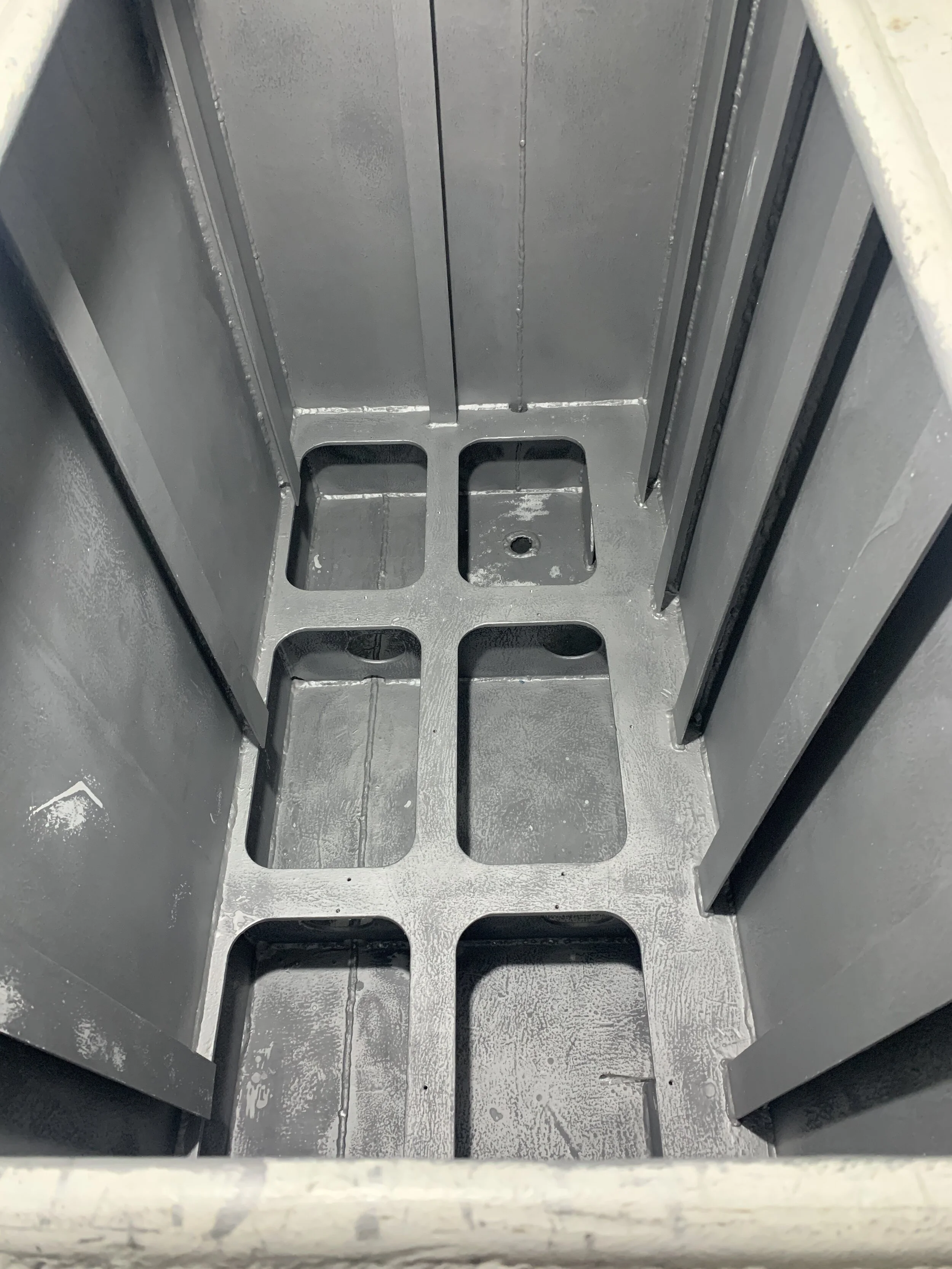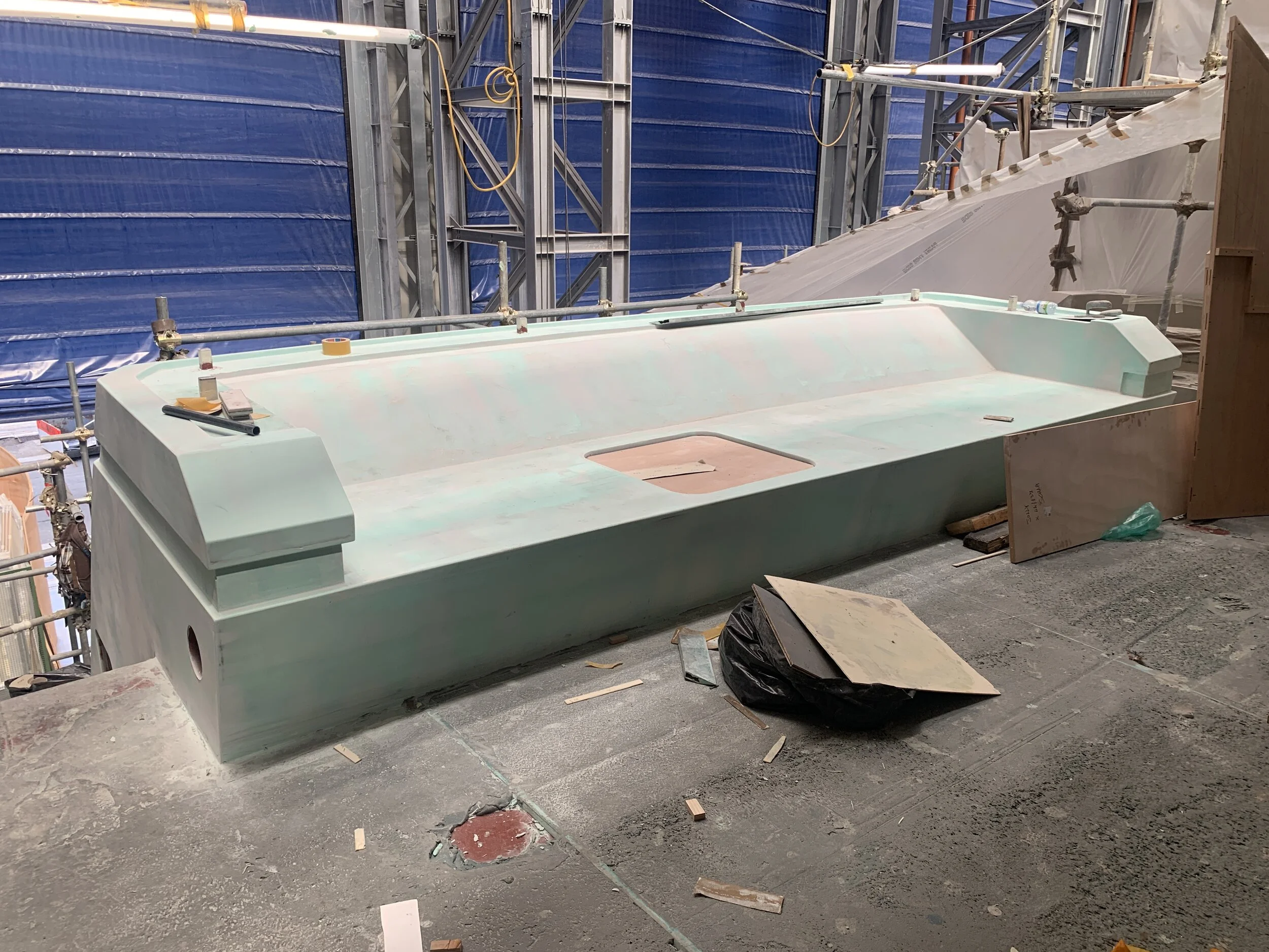 Transom area - 2nd stage filler with some metal primer visible