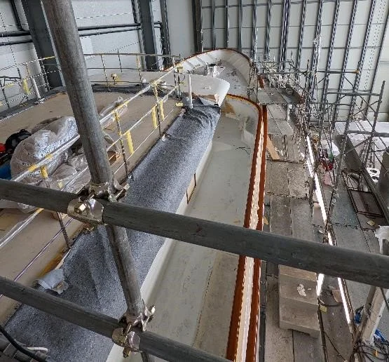 Crew have been busy sanding and adding layers of varnish to the capping rails.