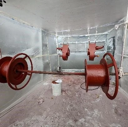 Components painting is underway. Including but not limited to deck furniture, windlasses, davit auxiliaries and passerelle. Some additional structures and frameworks in the engine room have been painted but rejected by Arrow, currently awaiting samples of an improved paint process for engine room structures.