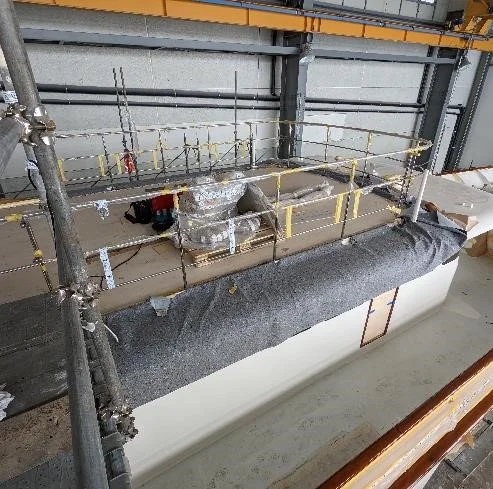The 6 new through hull generator exhaust outlets including their structural supports are complete. Awaiting RINA class surveyor for testing of the welds.