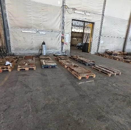 The process has begun of high pressure washing the lead ballast. Ready to be re-installed after the associated areas have had their bilges repainted.