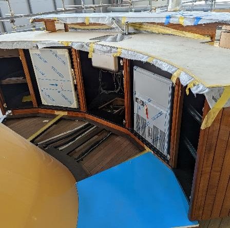 The wooden facias in the bridge of the 2 curved windows have been removed in order to create a more accurate quotation for the bridge window replacements.