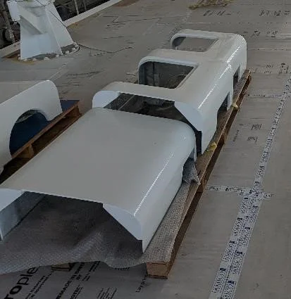 The davit based are now completed and painted. Ready for final installation once mechanical items are painted.