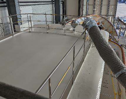 The sun deck non skid paint works have now been completed, subject to inspection on the final paint survey when M/Y Arionas is out of the shed. Visual inspection shows an even layer with a good grade of non-skid. The deck is now protected.