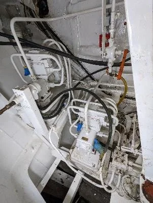 The fire main pipework repairs and hydrant valve services have now been completed. Many pressure tests were undertaken with compressed air to find the multitude of small leaks around the yacht that are now resolved. The system has now been flushed and pressure tested with fresh water and retains pressure. A final test will be completed in the water with the classification societies.
