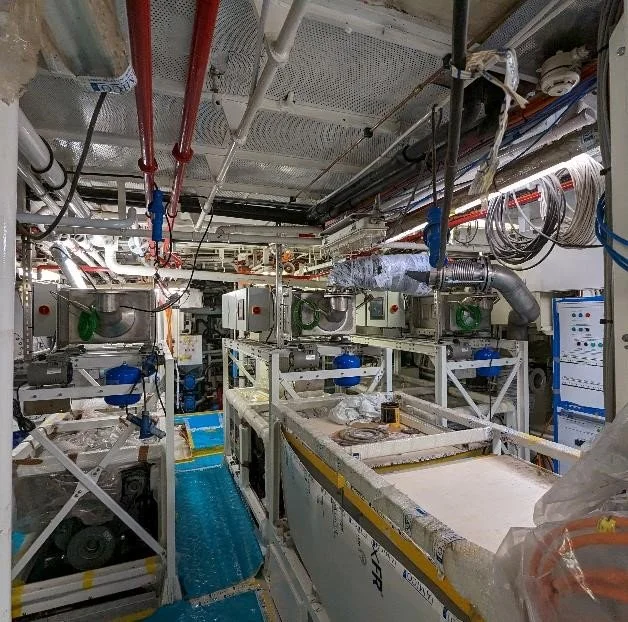 Engine room, other machinery space and bilge paint touch ups are under way by Amico now most of the large works are completed.