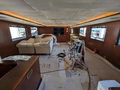 The crew are methodically going through the cabins completing a deep clean, interiorising, re commissioning the domestic electrics and lighting.