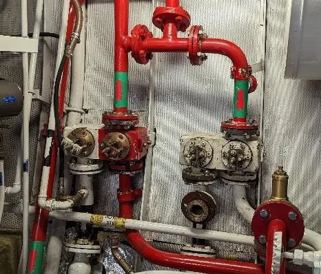 General service and fire manifolds have been reconditioned, bench tested and re installed onboard ready for the final testing in the water.