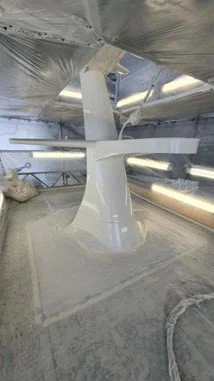 Main mast painted in Stark White top coat paint.