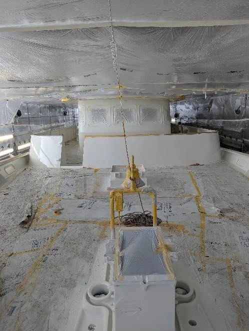 The upper deck teak is almost completed off-site and will shortly be delivered to the shipyard for installation, the decks are now ready to receive the teak.