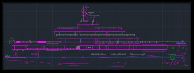 Exterior areas: The paint & faring company have started adding the faring lines on the Sun Deck and the Bridge Deck. Once these lines are in place then the faring can be done to these accurate lines.