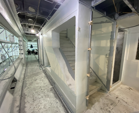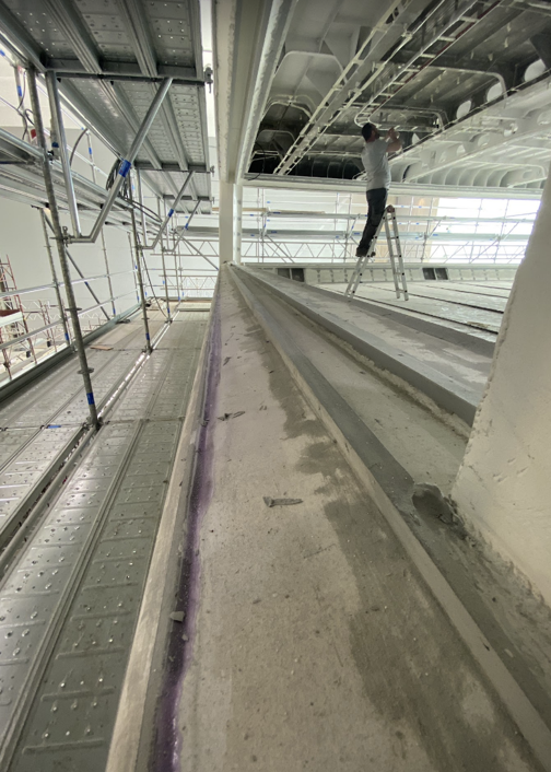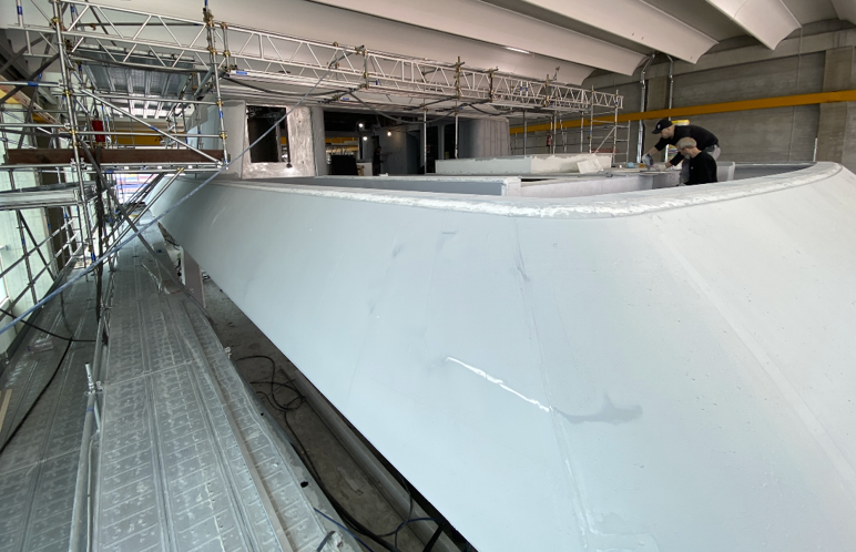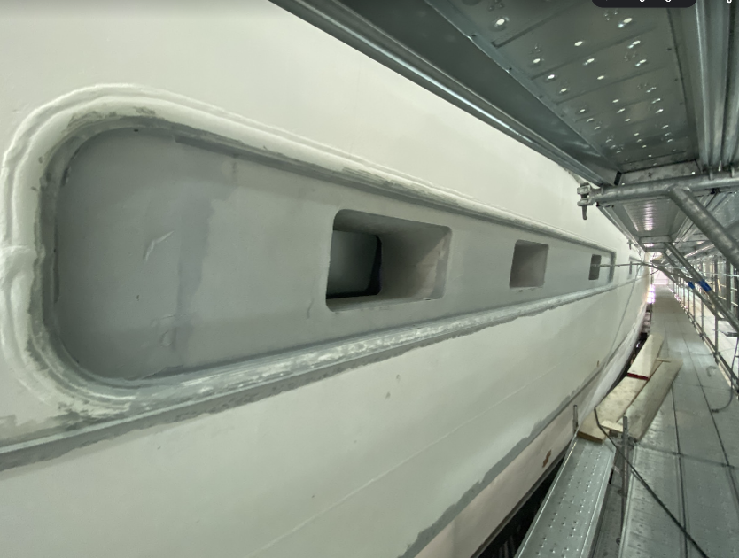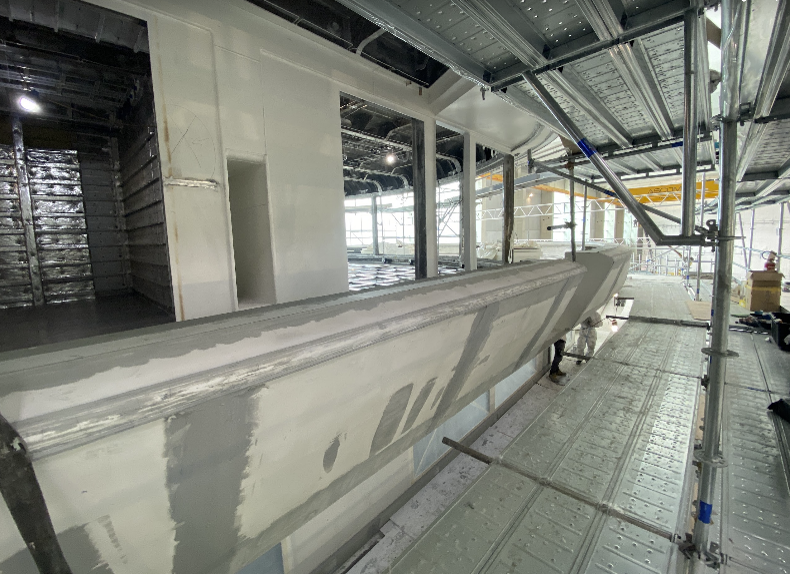 Faring Lines around the bulwarks has commenced on the Owners deck