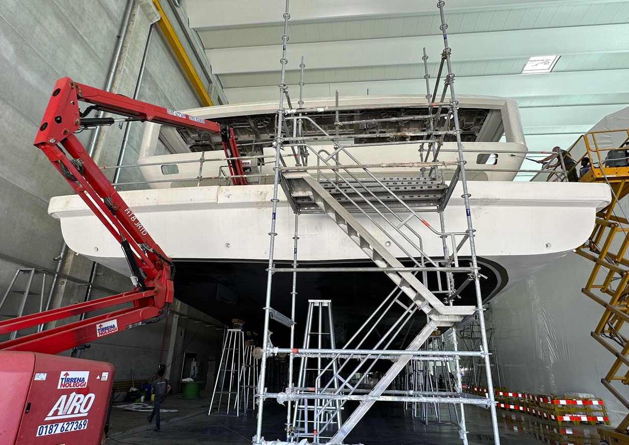 Turkey - Moving 598 out of the shed and onto the floating dock was a two-day process. 6th July departed Turkey for Carrara Italy