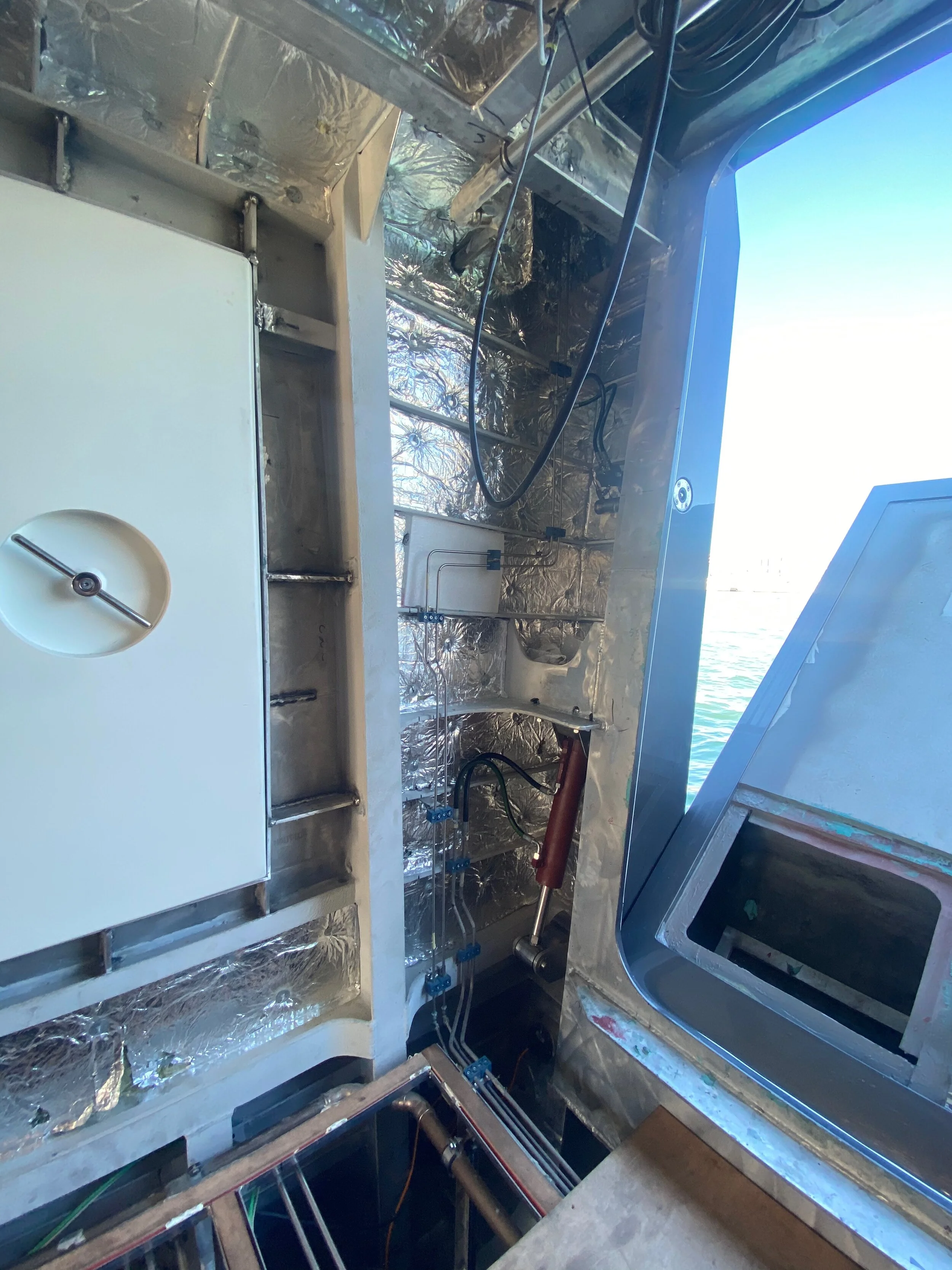 Panelling installed, cable runs continue