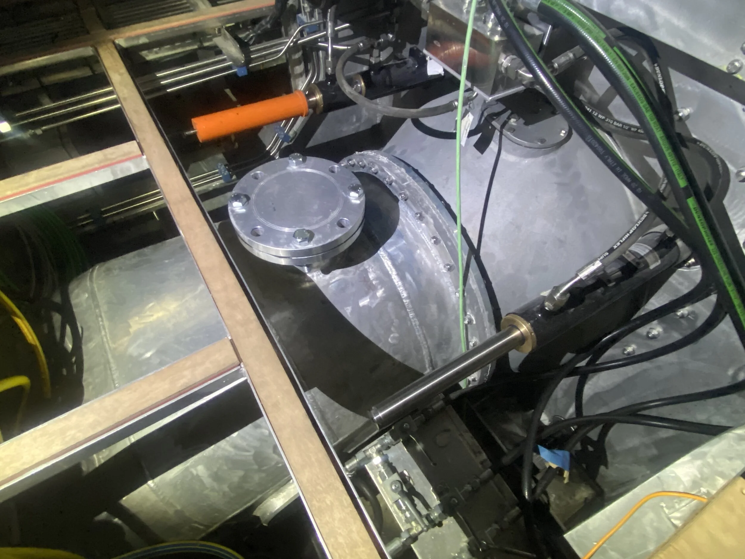 Hull opening hydraulic ram and proxy sensor