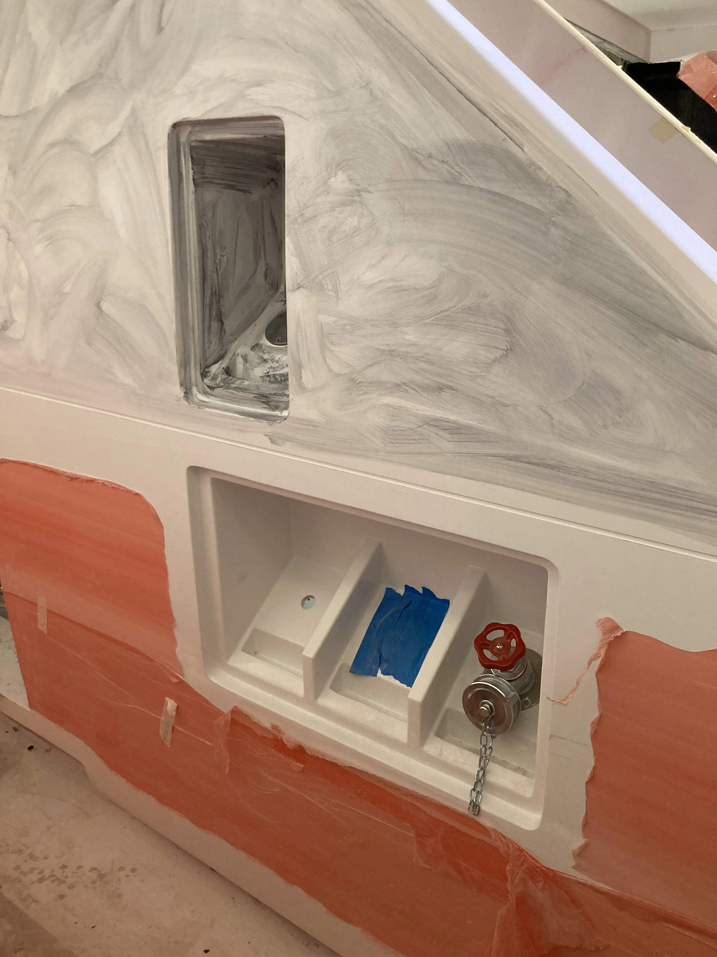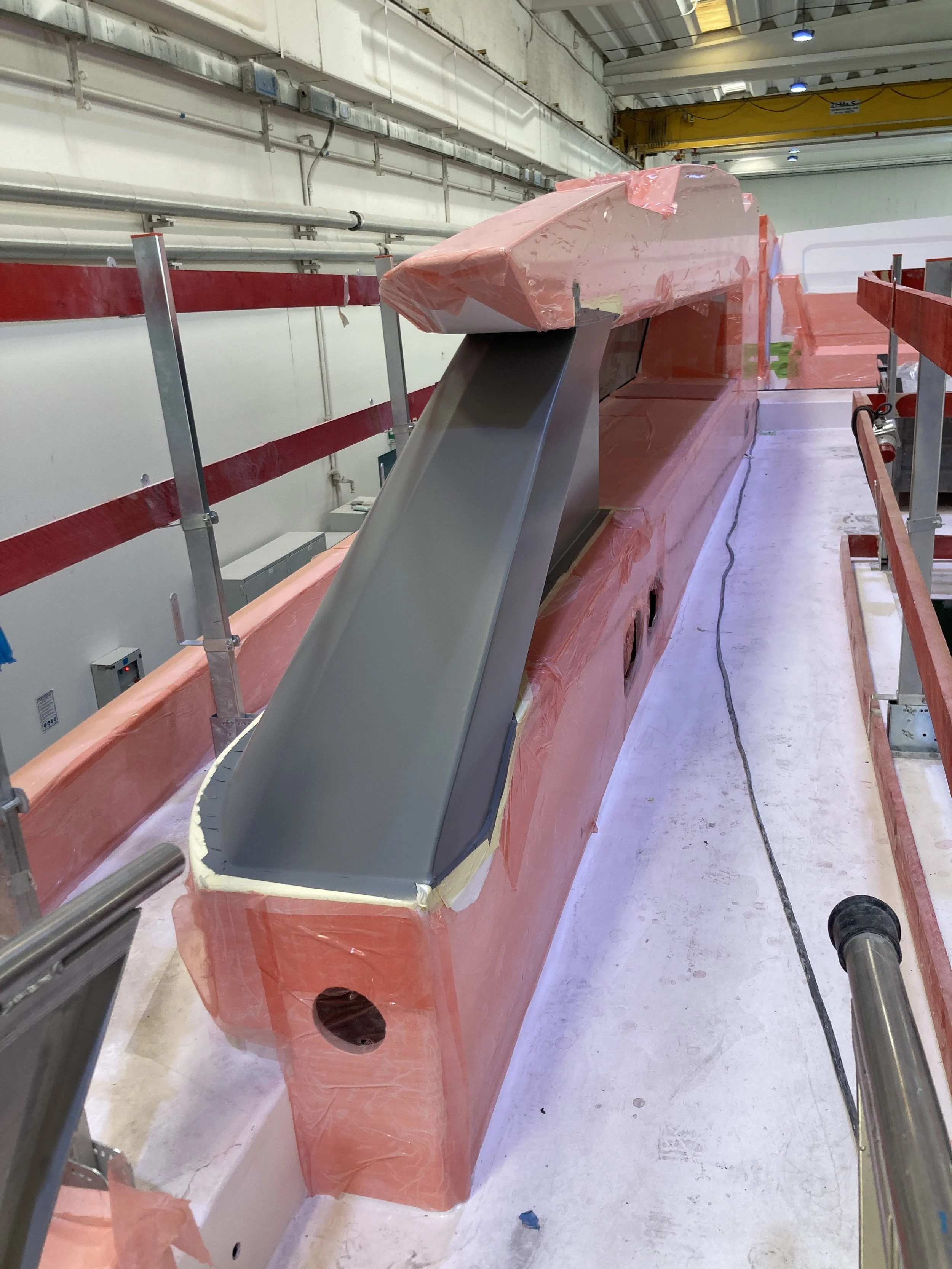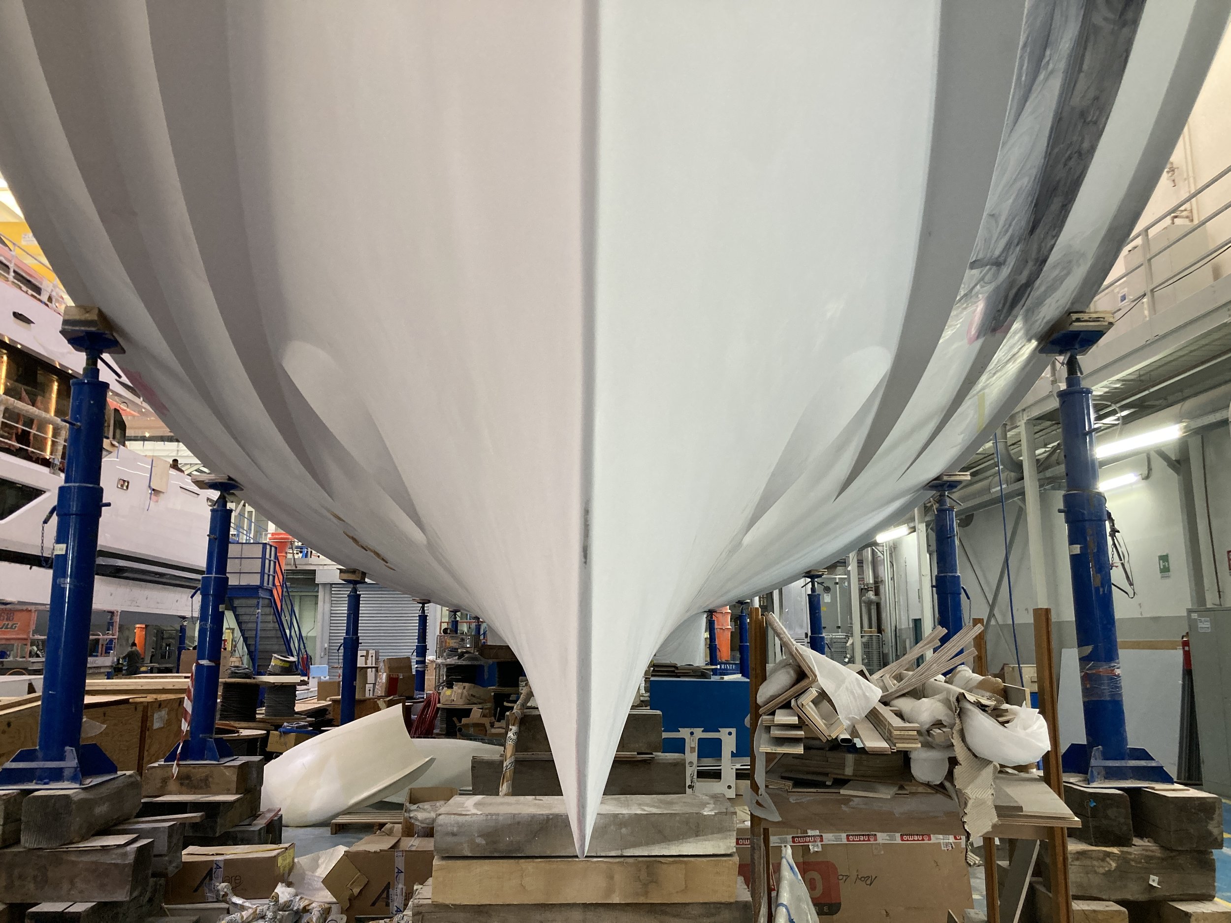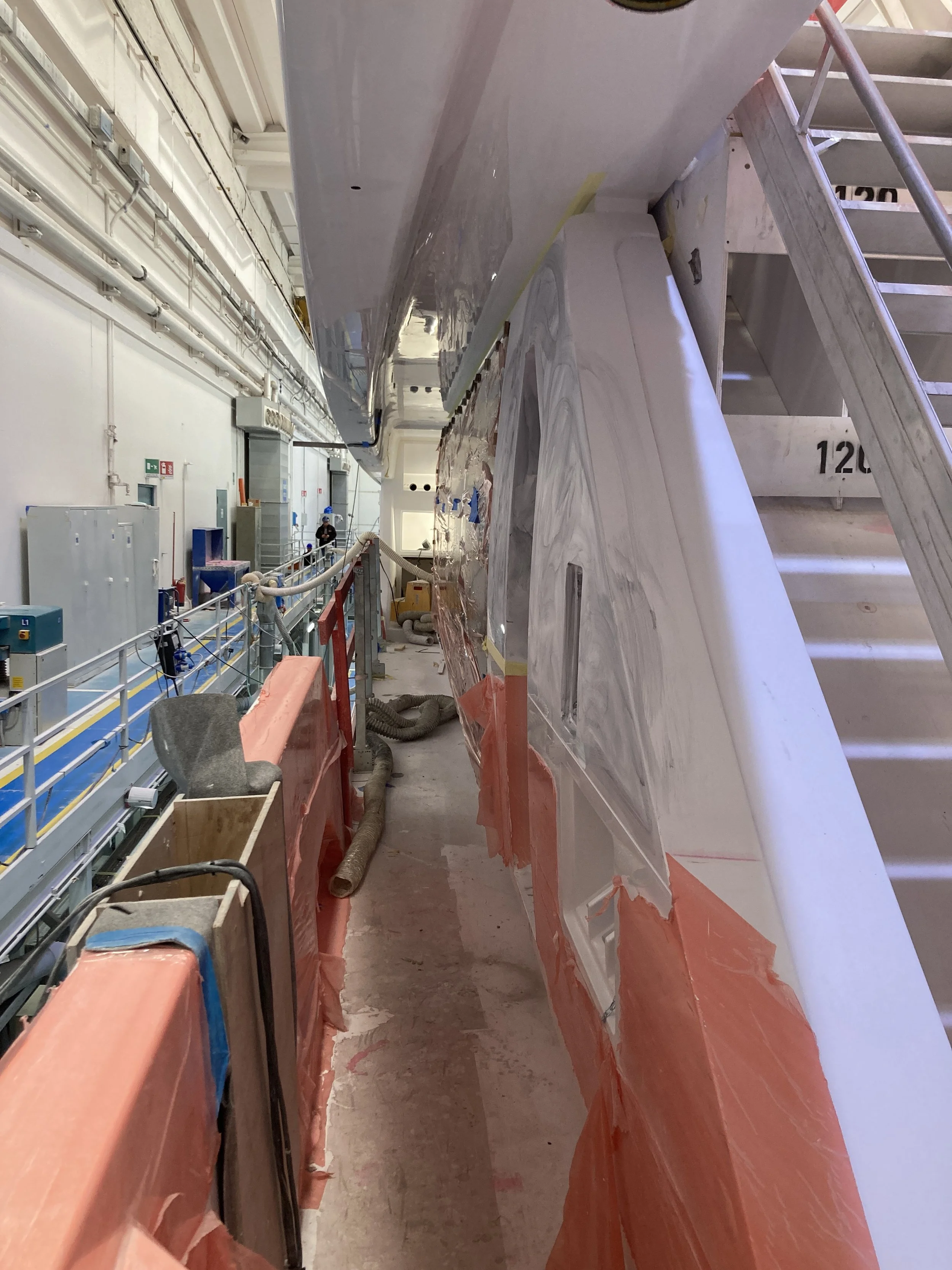 •Hull is being prepared for the final cycle of antifouling which should take place in proximity to the launch