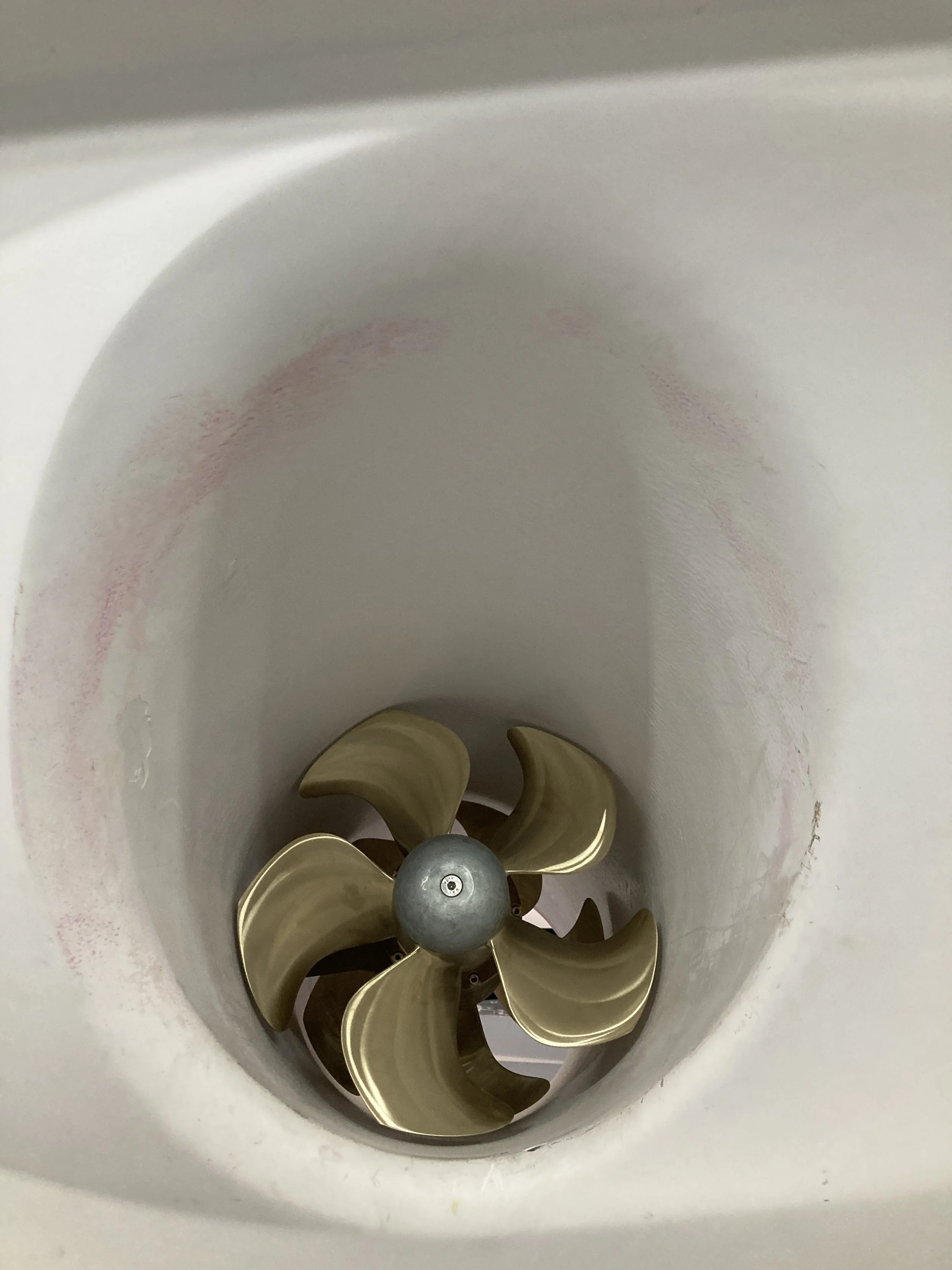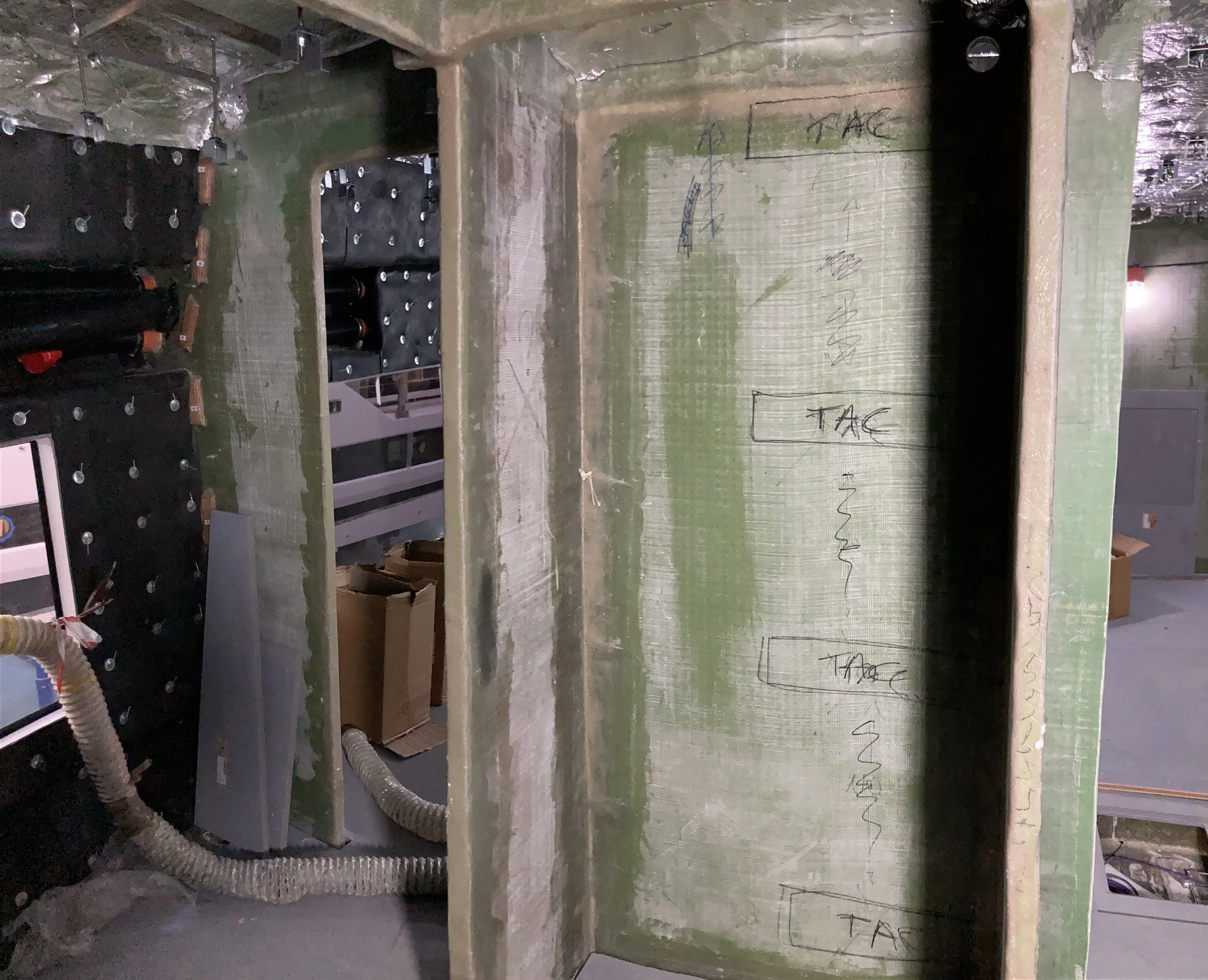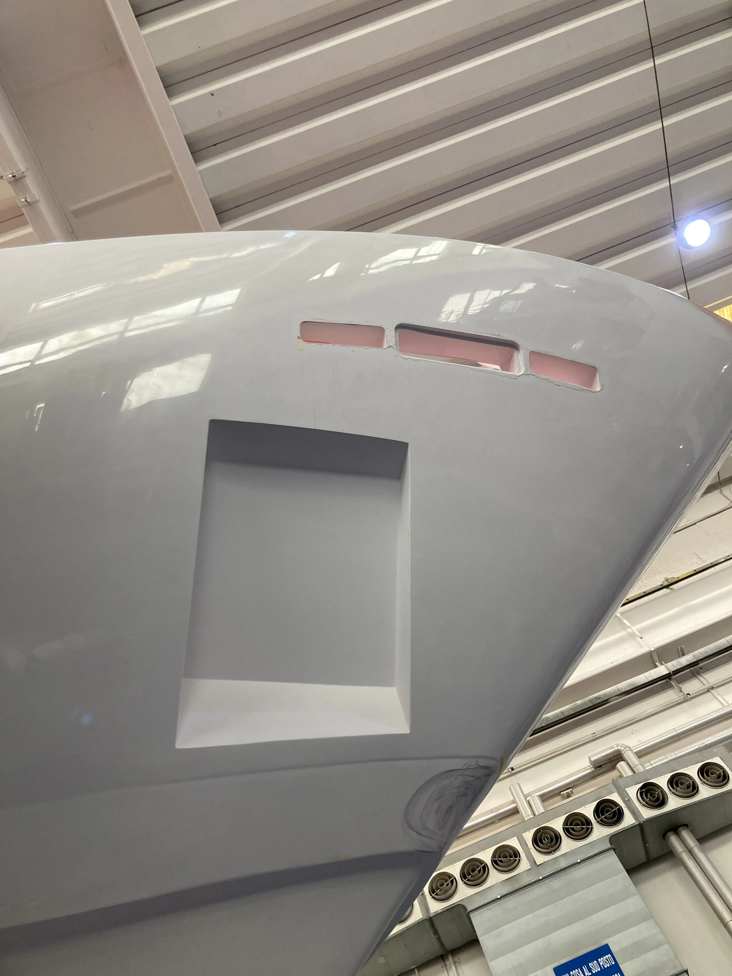 •Bow thurster cofferdam is temporarily protected, but will be given a second coating of gelcoating prior to delivery,
