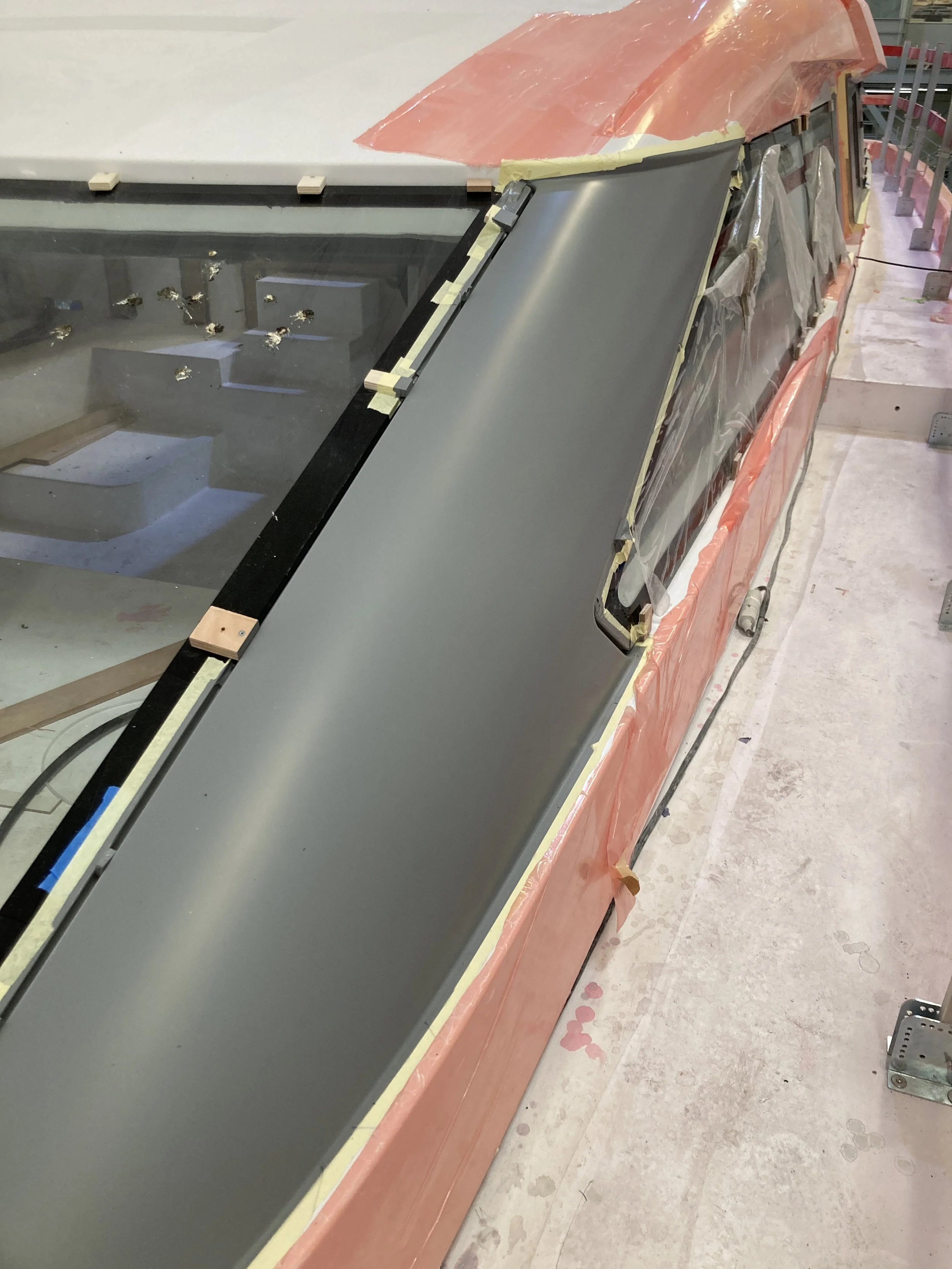 •Windows on first tier of superstructure (Master cabin), have been installed,