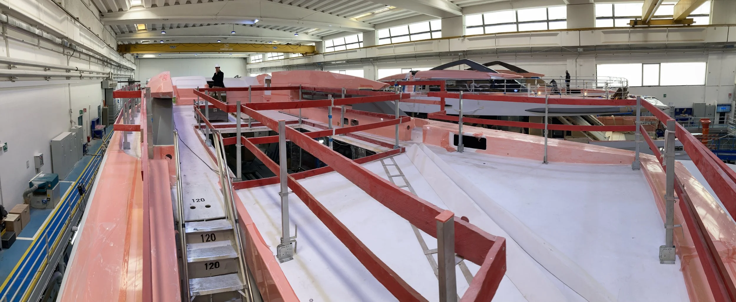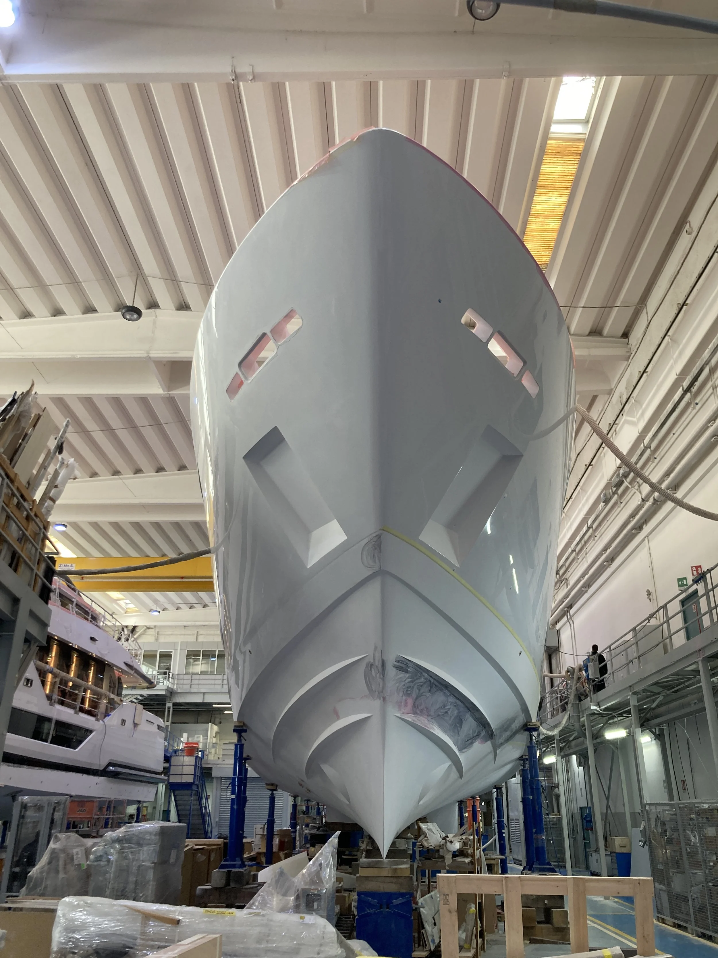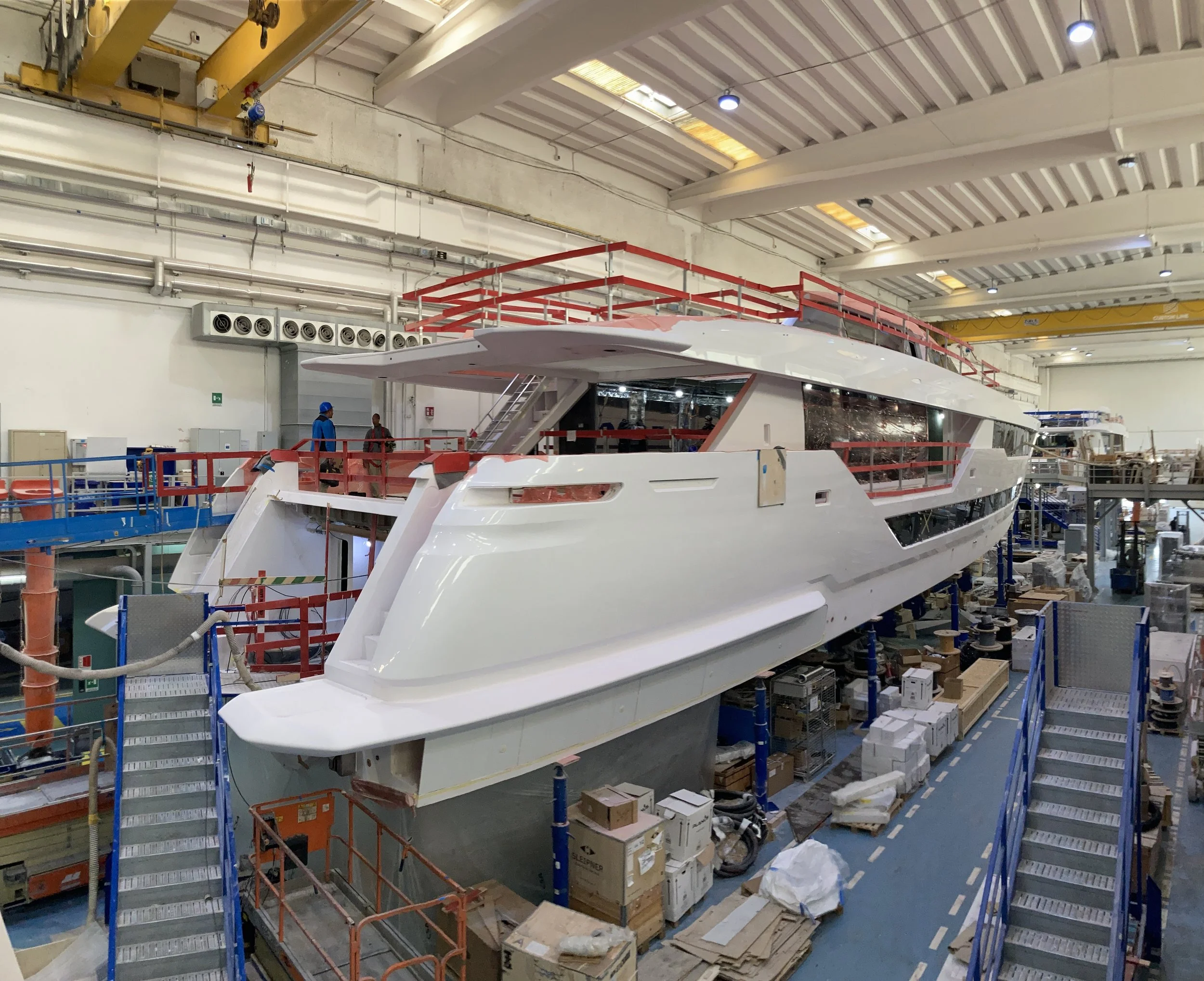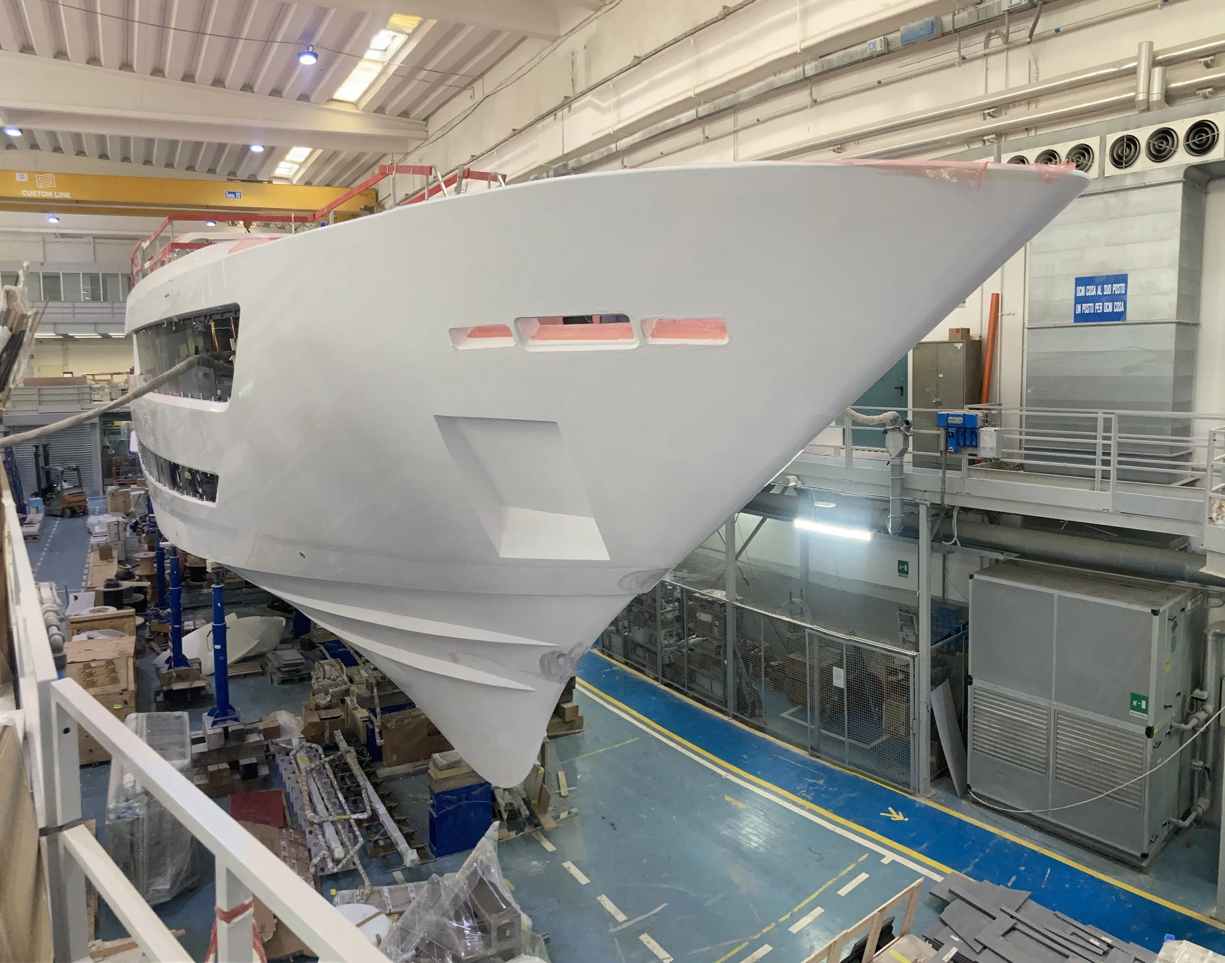 •The outfitting is taking place at the Custom Line/Ferretti facilities in Ancona.