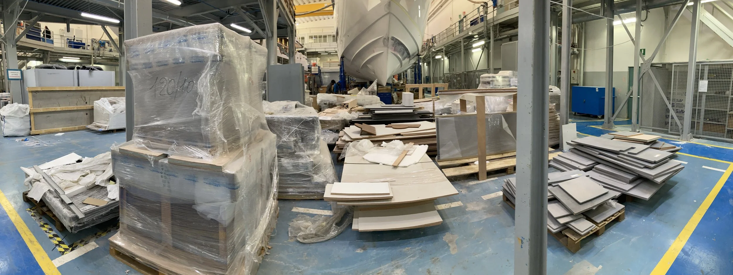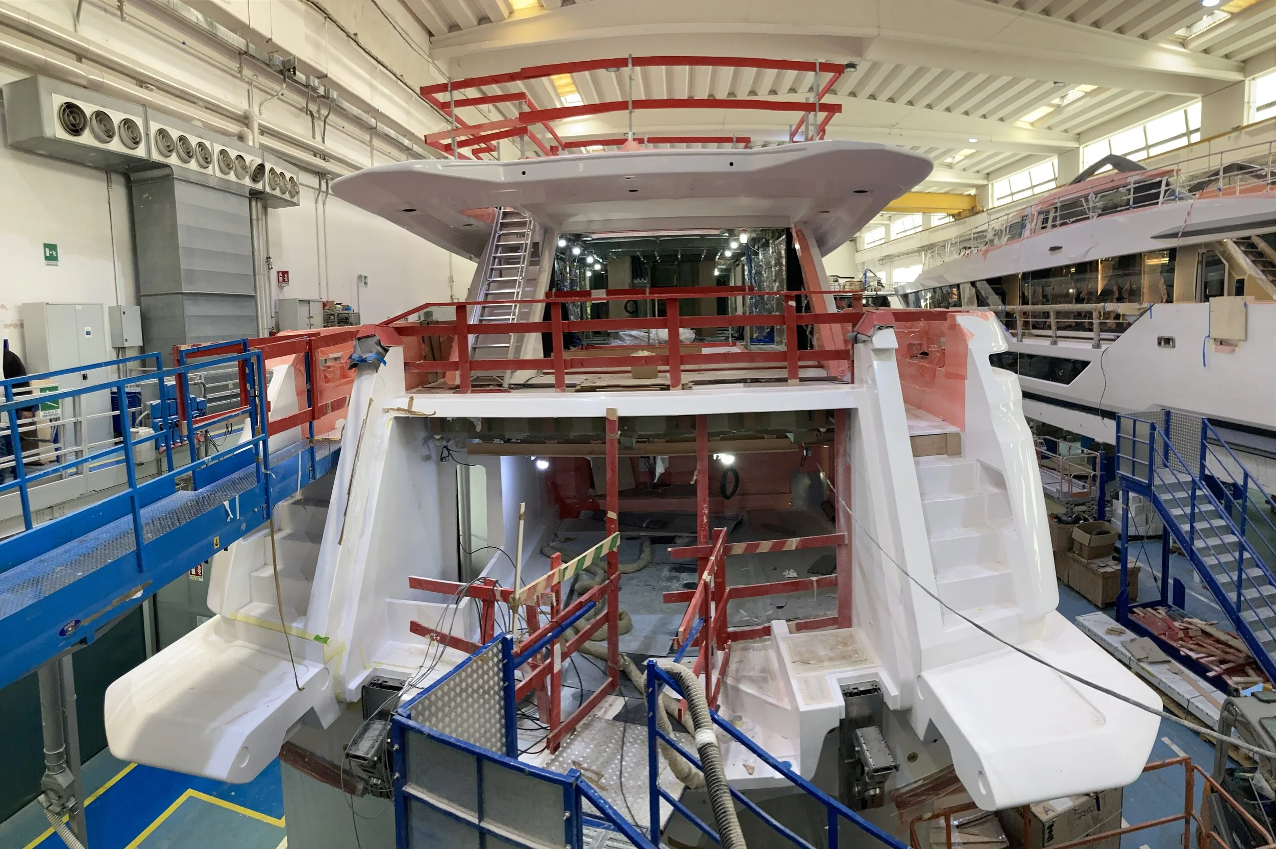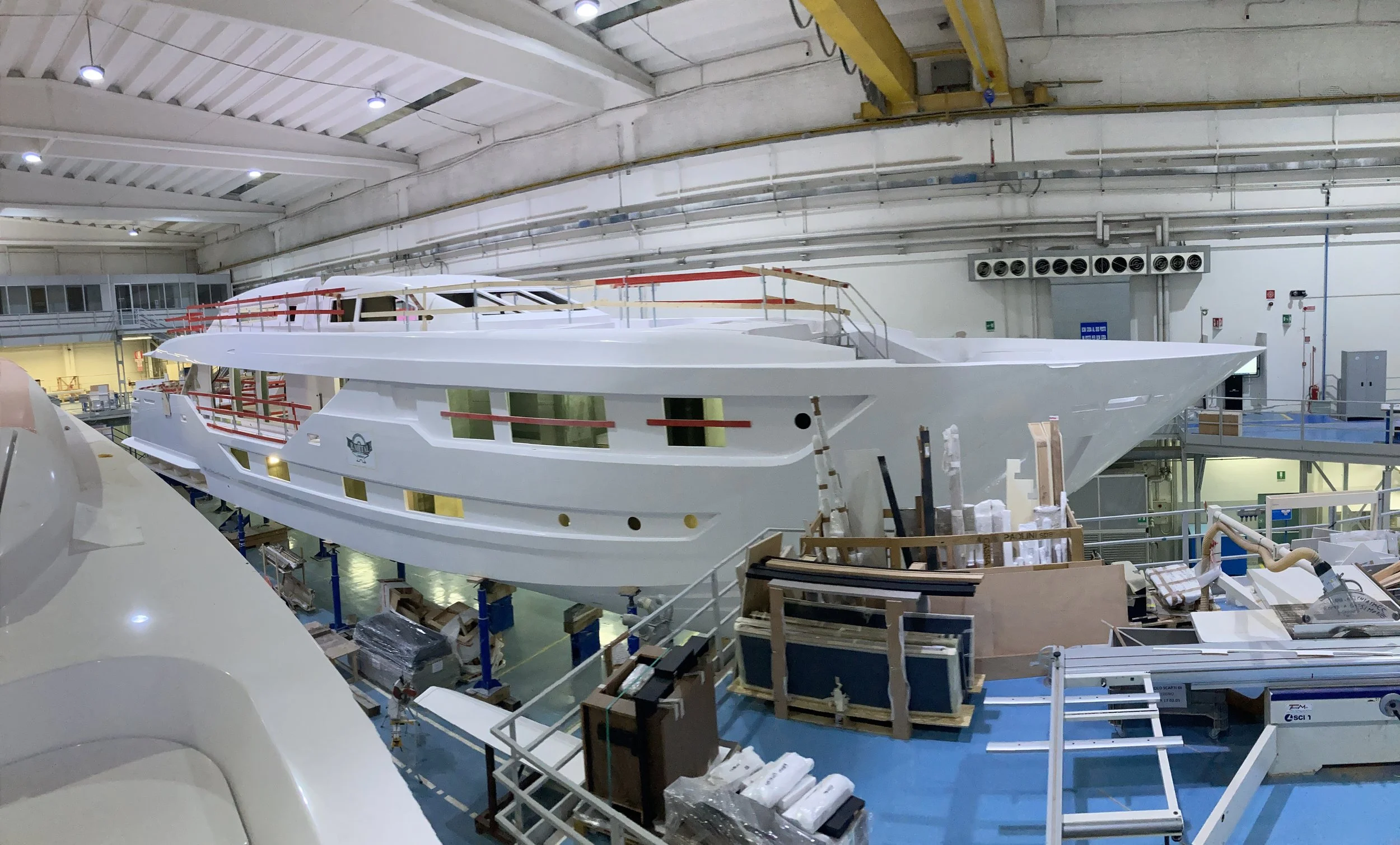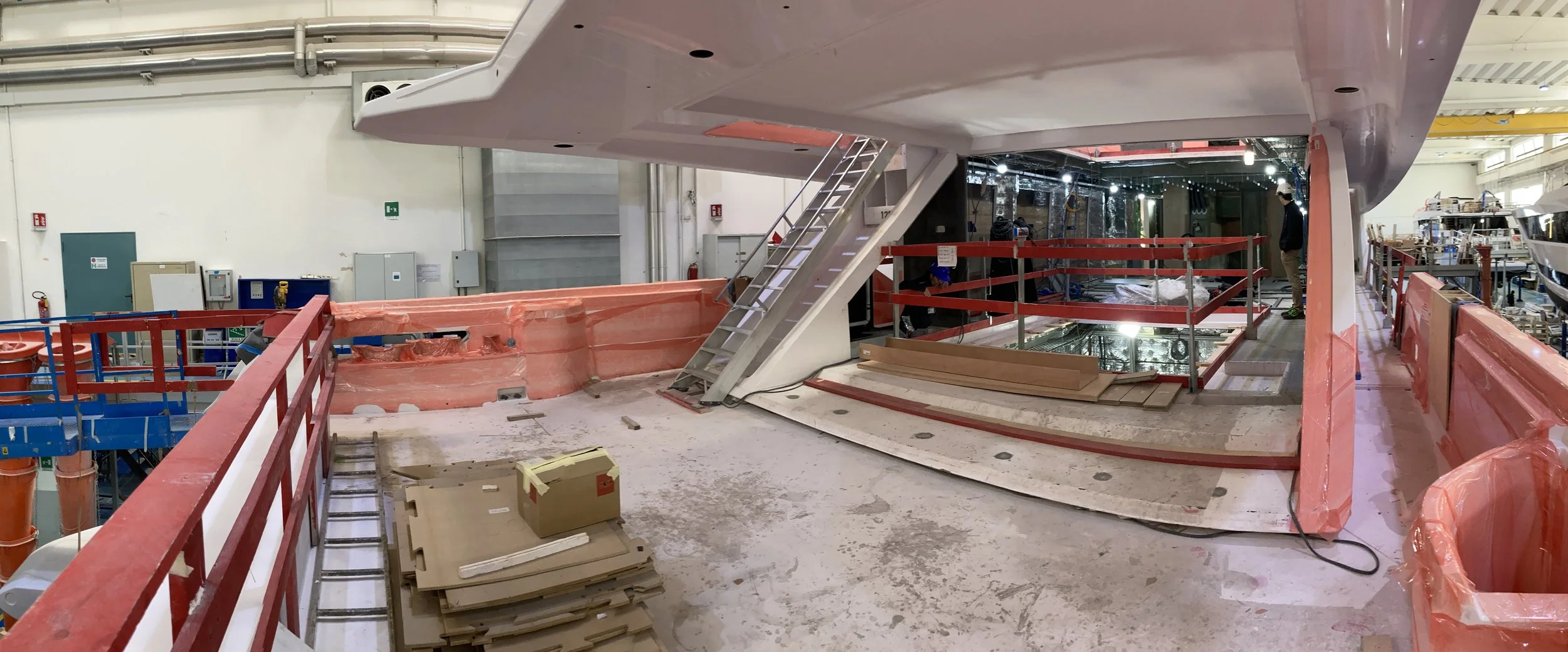 •The outfitting is taking place at the Custom Line/Ferretti facilities in Ancona.