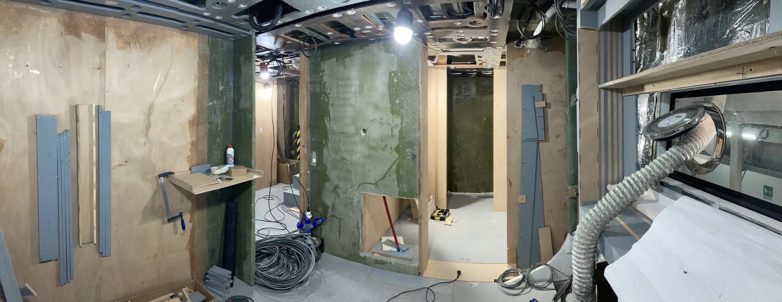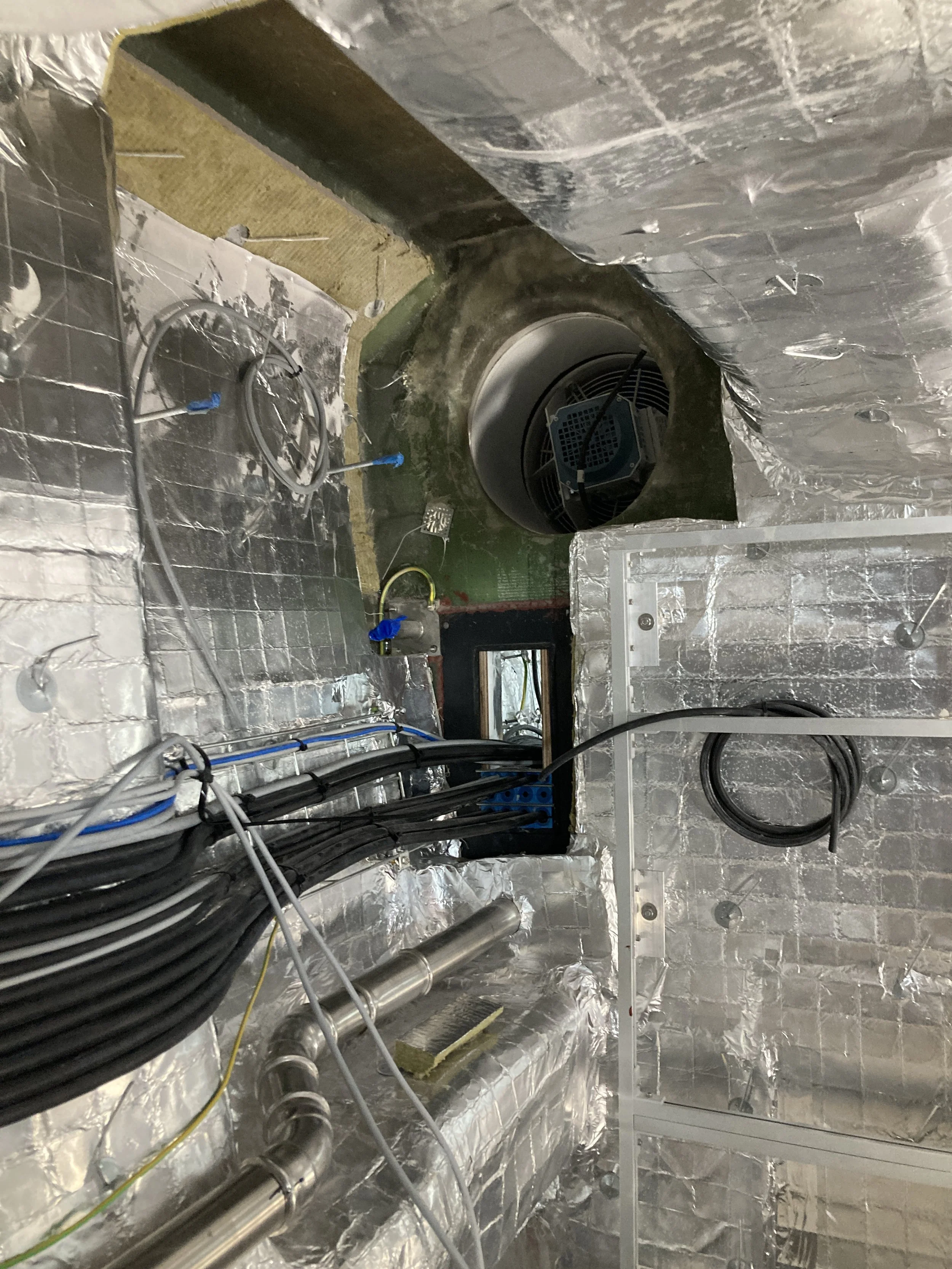 A few more details of electrical cabling, piping, ducting and insulation in the main deck lounge.