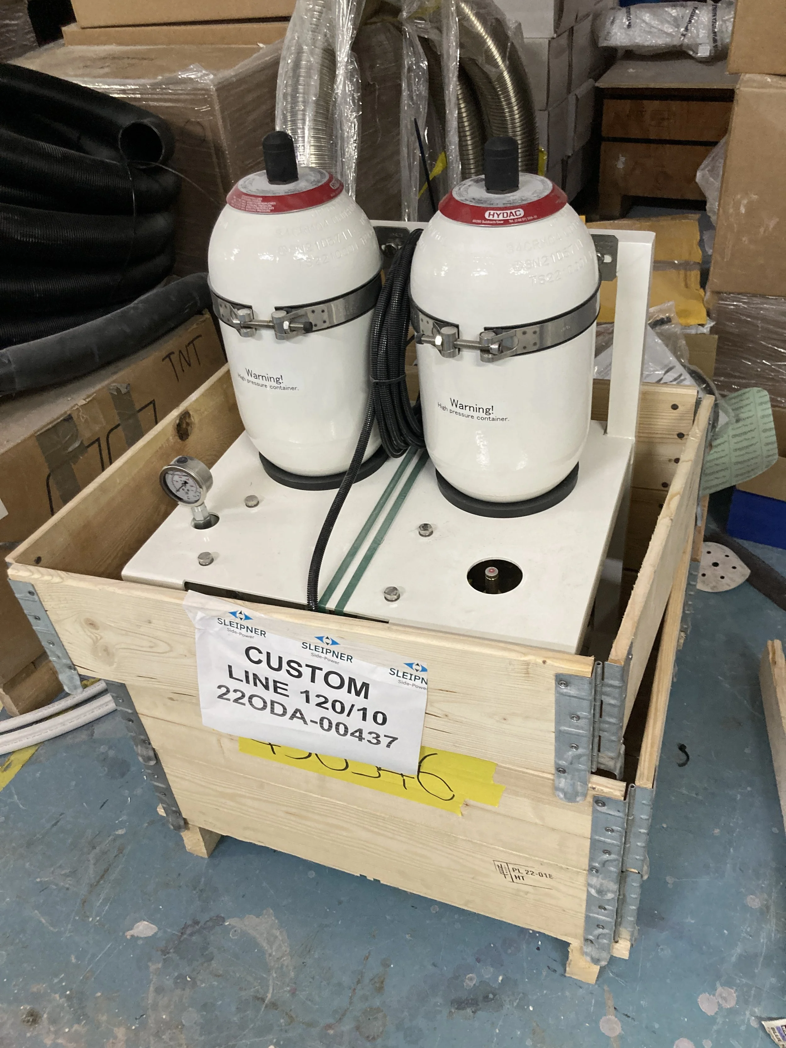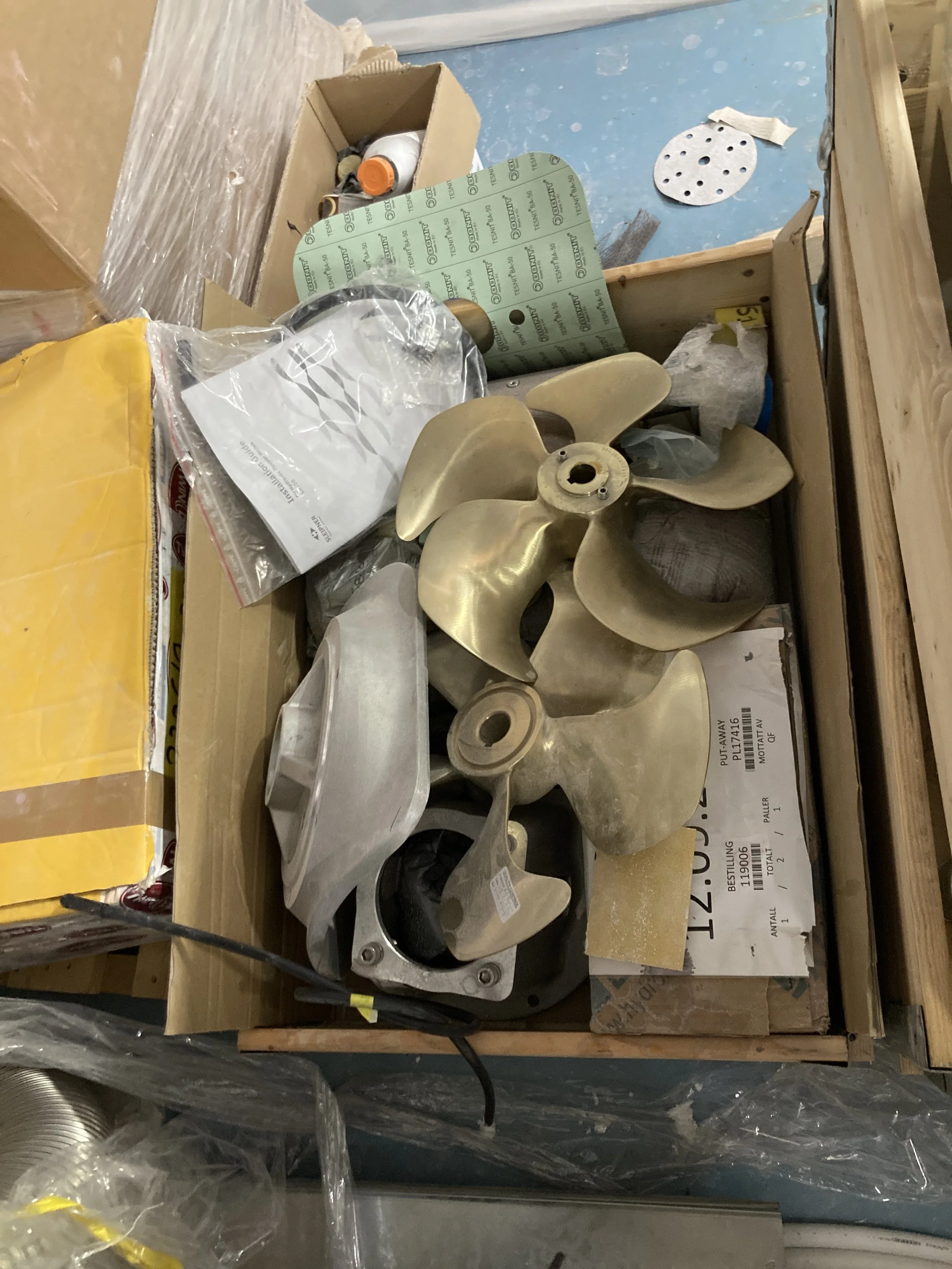 •Various of the larger components and apparatus which are to be installed on the yacht are found beneath the vessel, ready for installation,