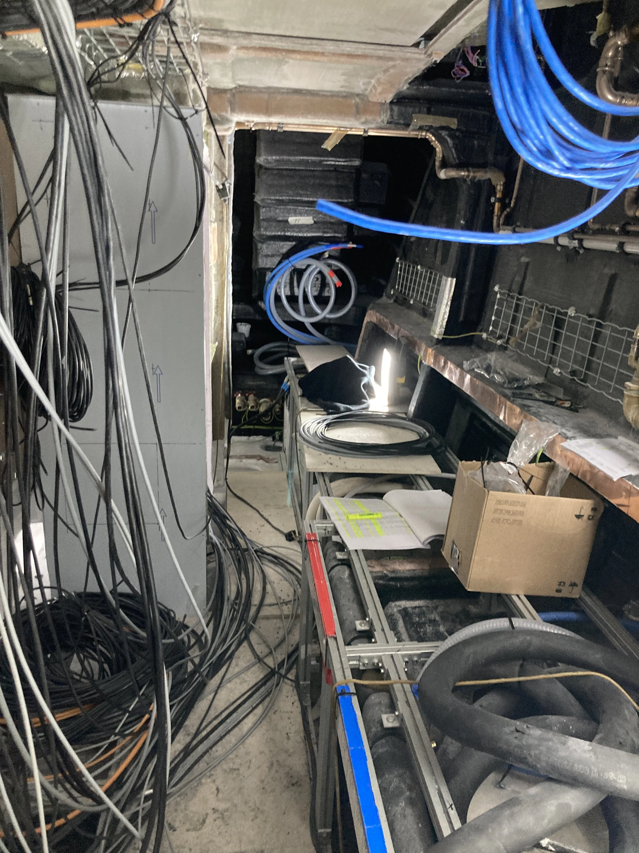 A few more details of electrical cabling, piping, ducting and insulation in the main deck lounge