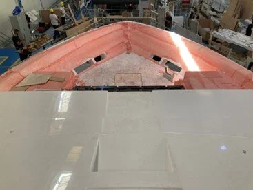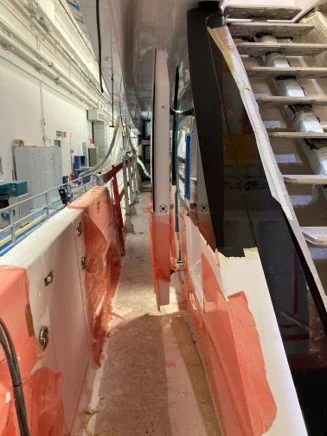 •Outfitting is progressing in the main deck aft cockpit areas,