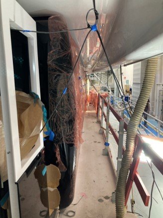•Engine room and aft technical spaces have moved along swiftly in terms of outfitting with all major apparatus having been installed prior to the deck hatch being closed,