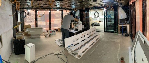 • Interior areas particularly on main deck are proceeding well having closed off the engine room hatch. Many areas such as lower decks and master cabin are close to complete in terms of linings, and therefore furniture is now being installed,