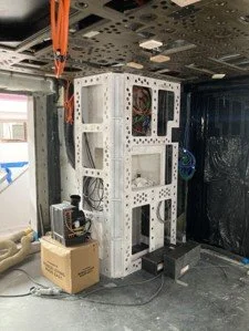 • Outfitting of the area is in progress including rollers, doors, and winch.