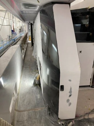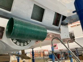 • Handrails are being installed throughout the vessel and most stainless-steel accessories (including stairs) are now in place,