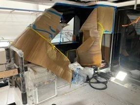 • The roll bar and mast have not yet arrived for installation on top of the sun deck,