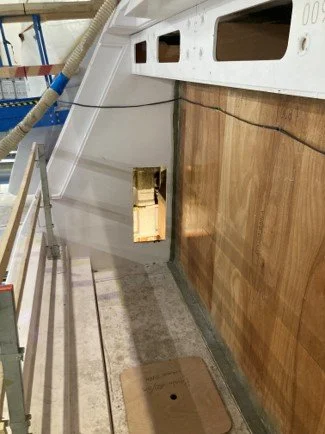•The area is still outfitted for the transportation from the GRP manufacturing facility in Sardinia. For example the covers for fairleads.