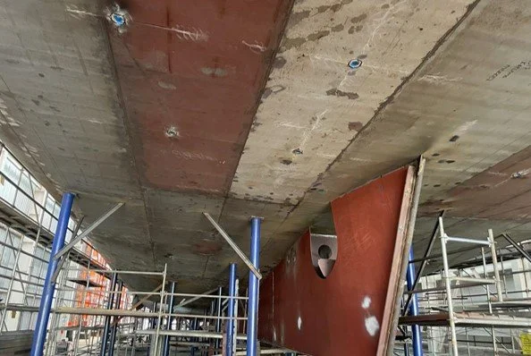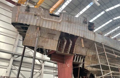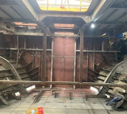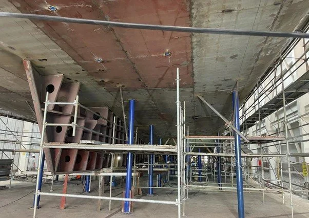 The hull structure is 90% complete, progress shown in photos below of the bow section progress.