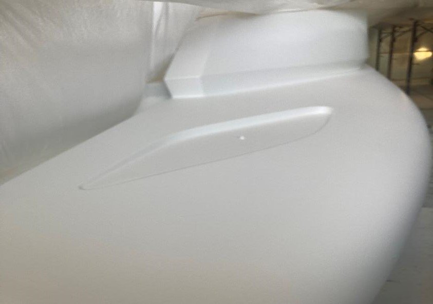 The image below is showing the aft Starboard quarter which is faired beautifully with the recess for retractable cleat.