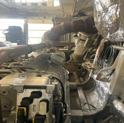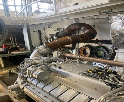 • Main Engine pre-alignment works are ongoing and the stainless exhaust piping is being calibrated .