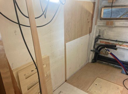 • Plumbing pipework is continuous at this stage and is now at around 50 % in lower deck area.