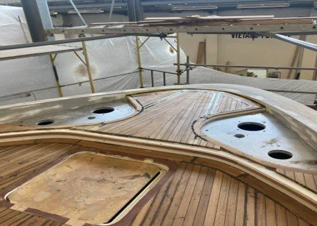 • Teak caulking and initial sanding has commenced forward area of bridge.