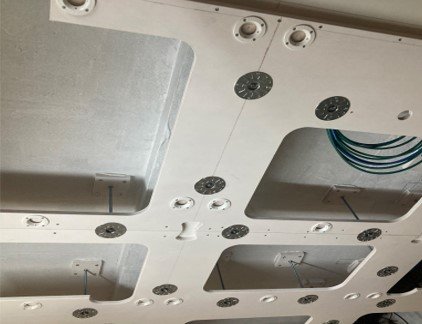 Below: paint work finished above deckhead panels in preparation for deck head panels.