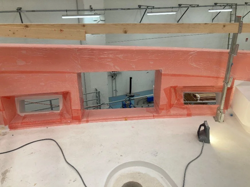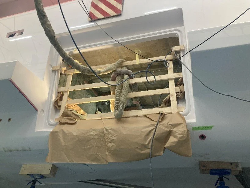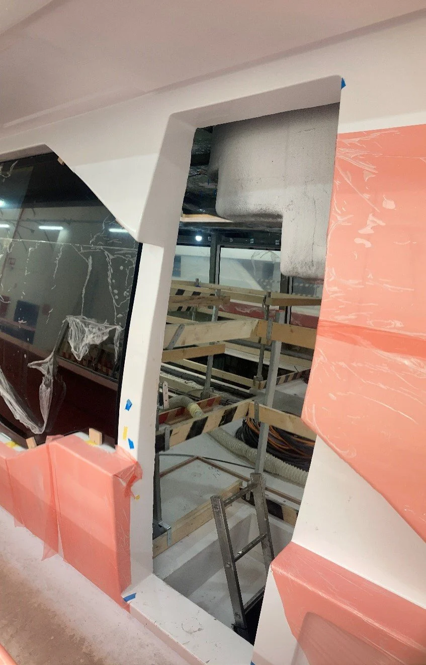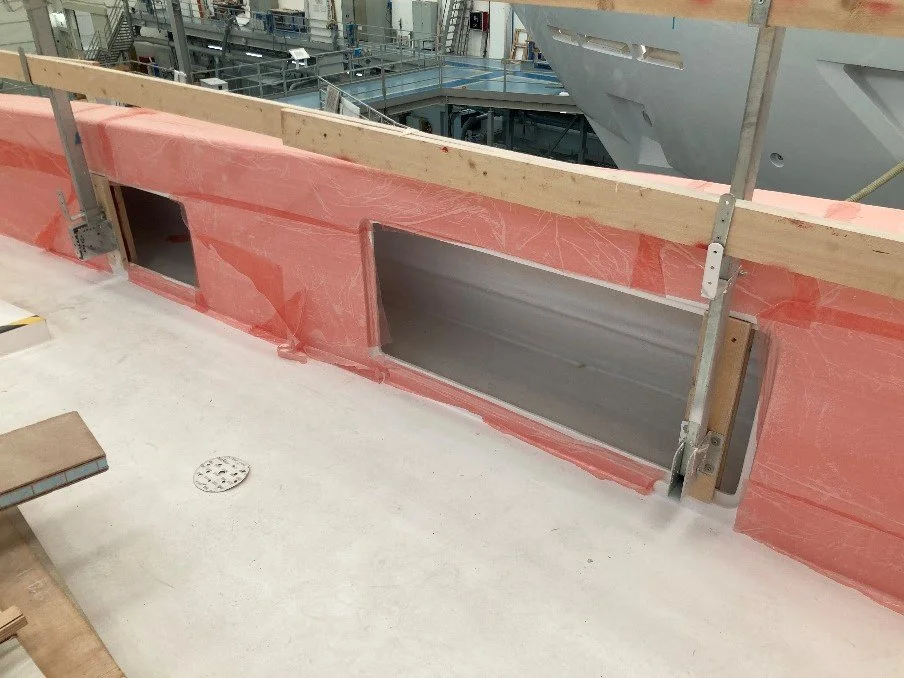 •Fwd Master cabin windows are being installed.