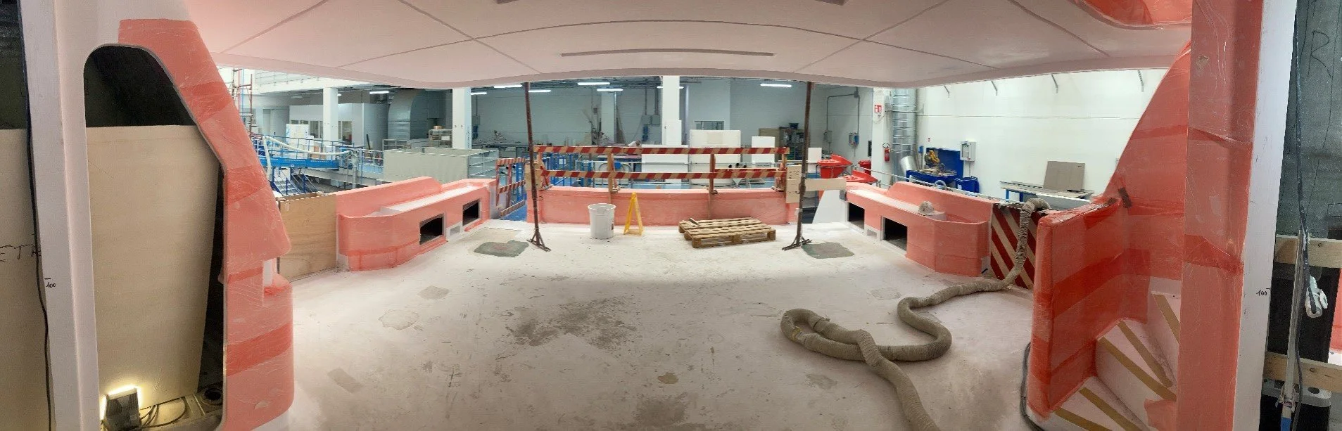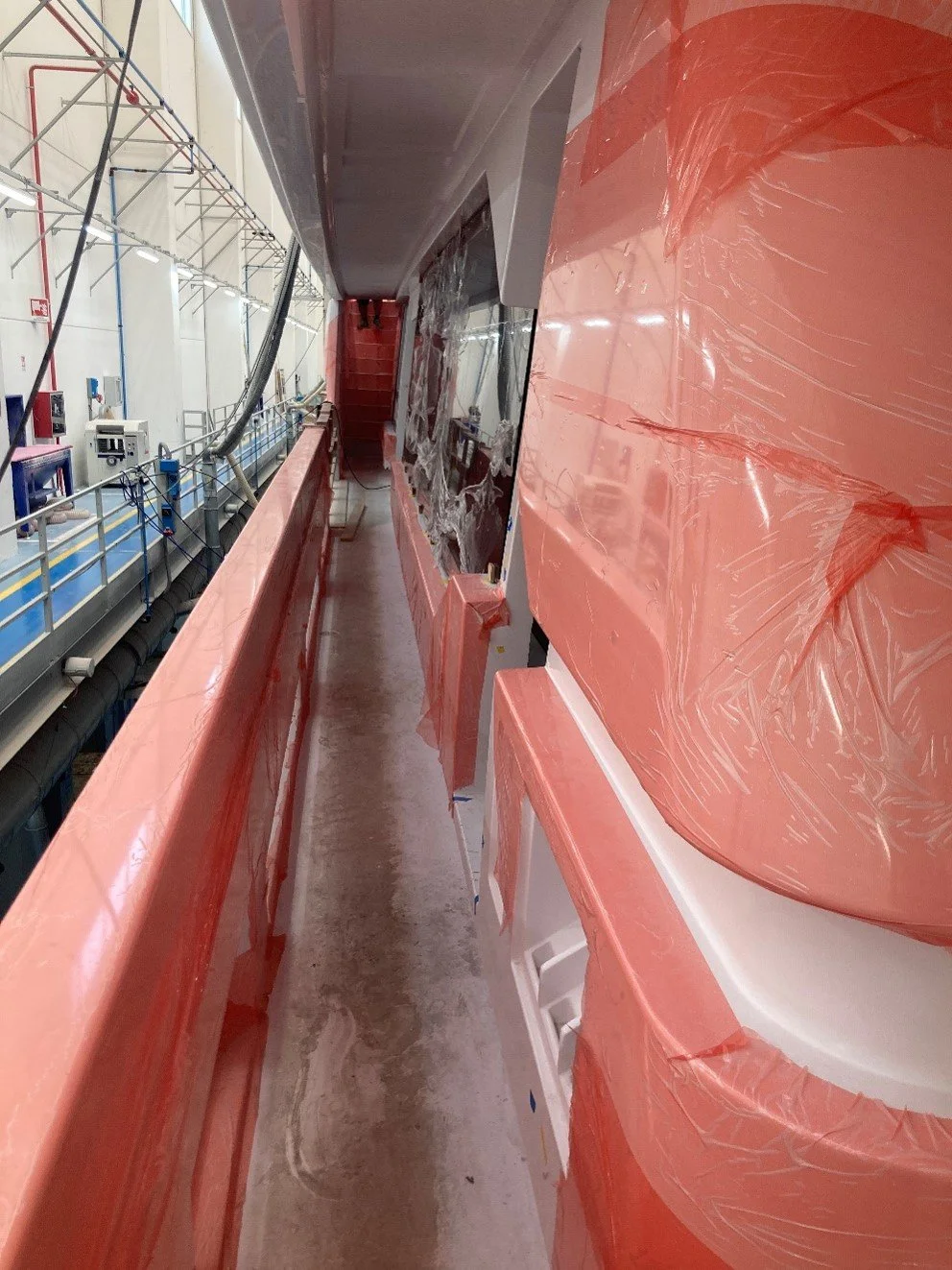 •Side corridor surfaces are protected with red plastic material,