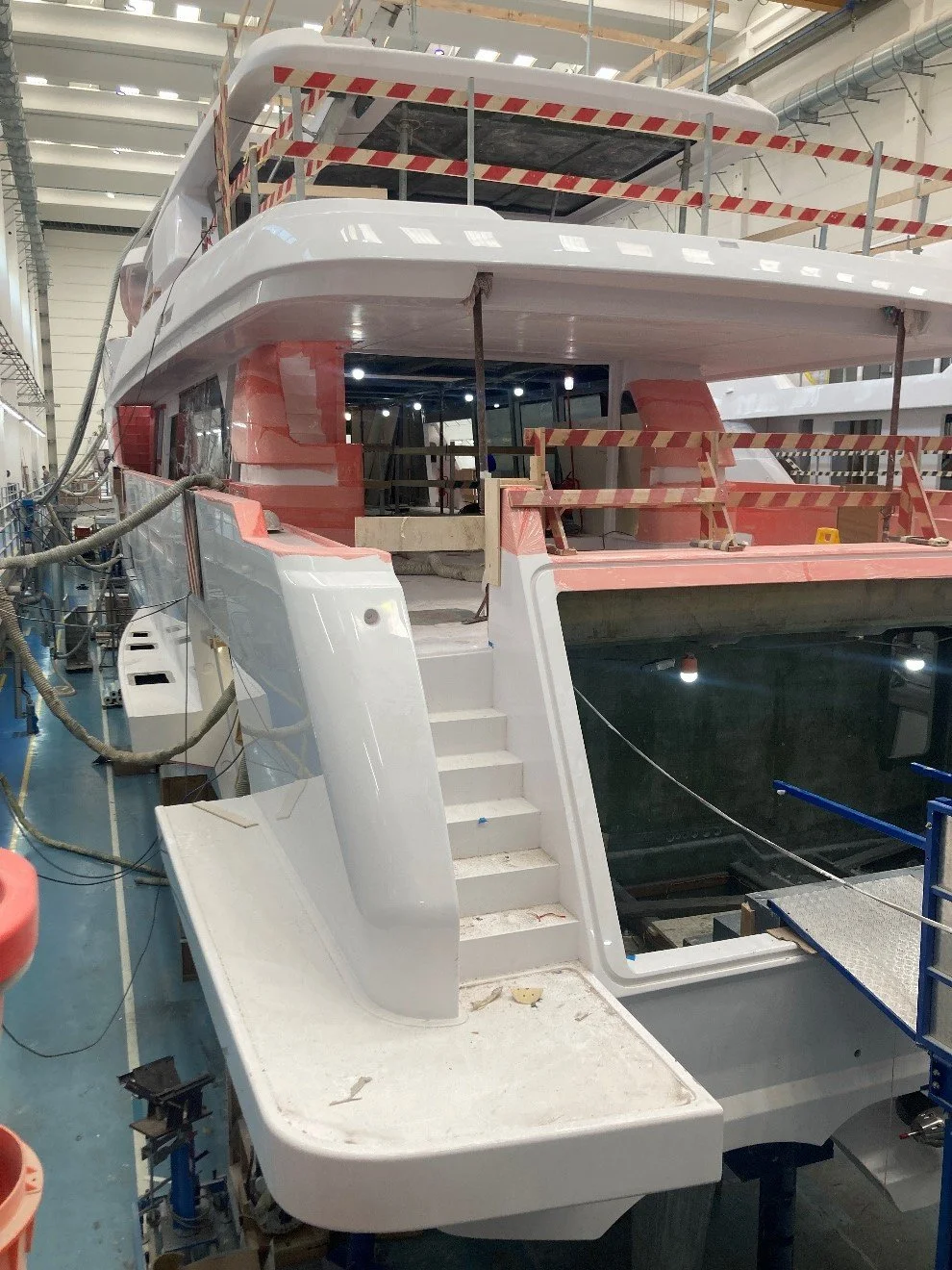 •Stern thruster housing can be seen on aft transom. The drive has been installed but not the propellers yet,