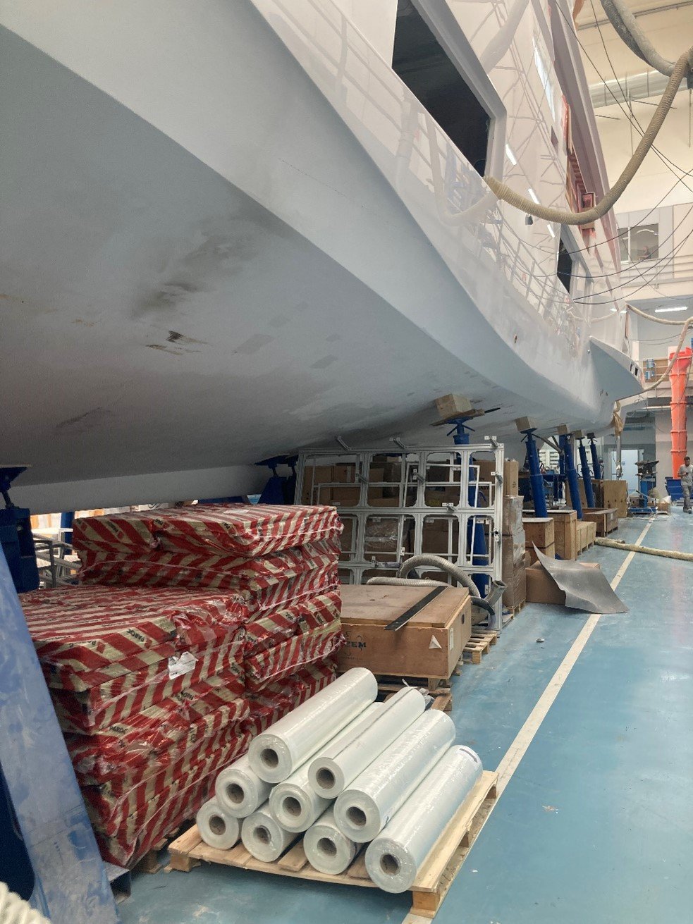 •Shaft line and rudders are in place,